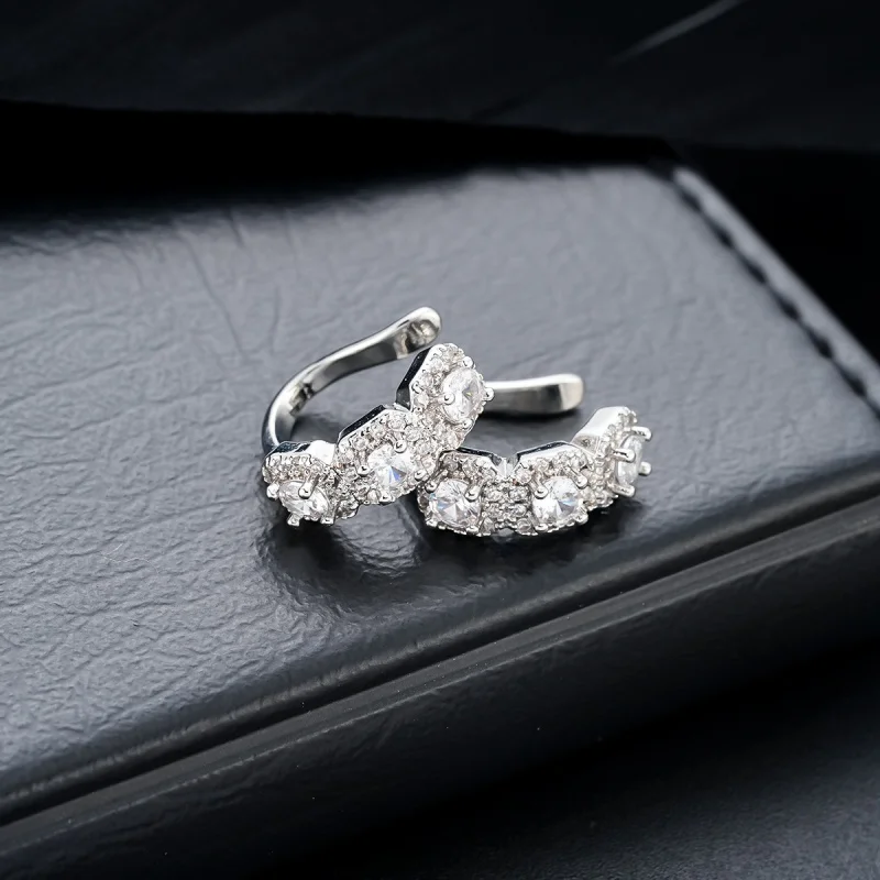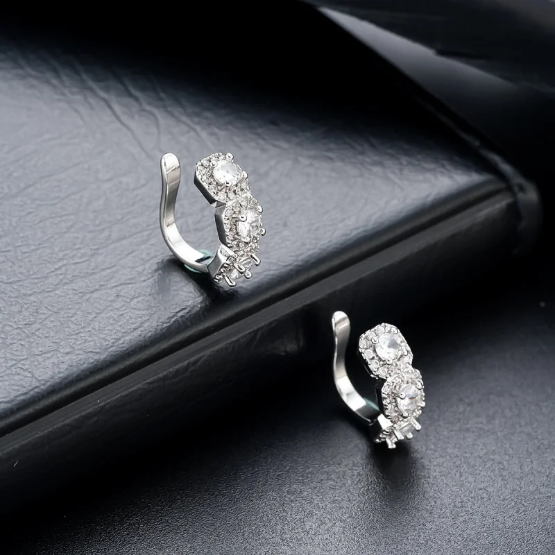Experience timeless charm with this pair of this elegant white K women’s clip earrings, perfect for adding a touch of sophistication to your daily look or special occasions. Crafted from high-quality copper alloy, these earrings feature a shiny, white finish that exudes a sleek and reflective surface. The geometric design with sparkling rhinestones or crystals embellishments gives them a glamorous, vintage-inspired appearance. Compact in size, each earring measures less than 10mm in diameter, making them comfortable for all-day wear. The curved hook design allows for easy clipping onto the earlobe without the need for piercings, blending modern style with vintage elegance. Enhance your jewelry collection with these versatile earrings that elevate any outfit effortlessly.