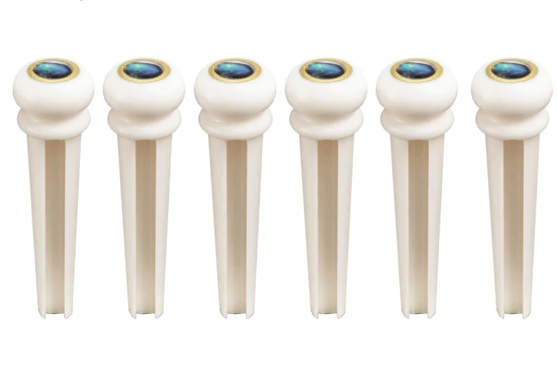 - Six premium cow bone guitar pegs, measuring 28mm long, designed for durability and a natural aesthetic; ideal for replace or customization on acoustic folk guitars.