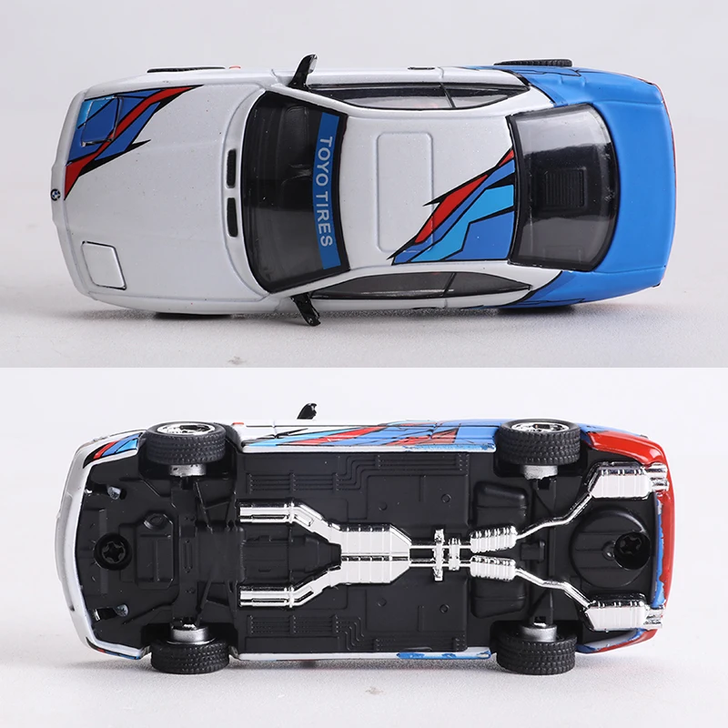 - The roofs bears a blue “TOYO TIRES” decal, reinforcing the high-performance racing theme, perfect for display or as a collectible item.