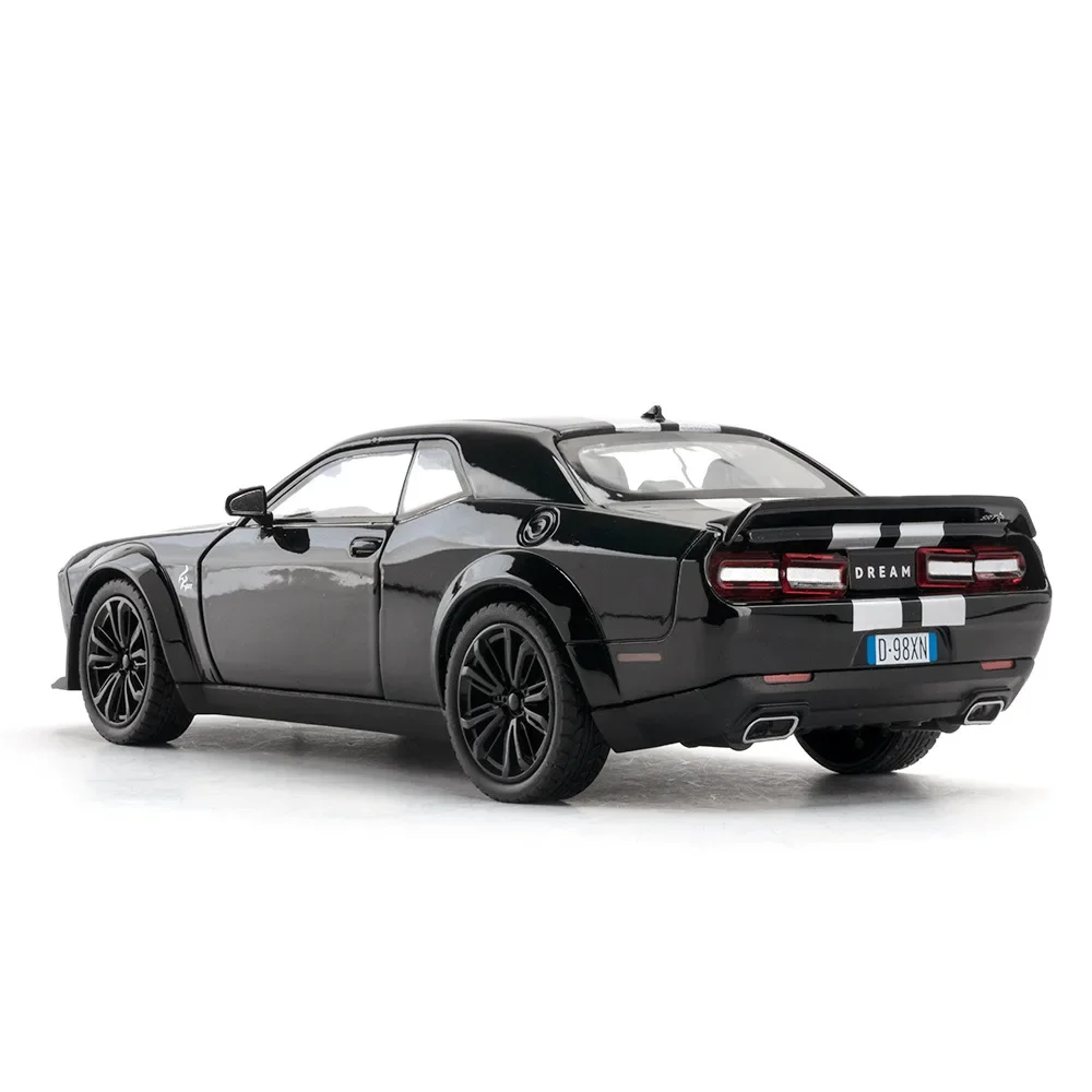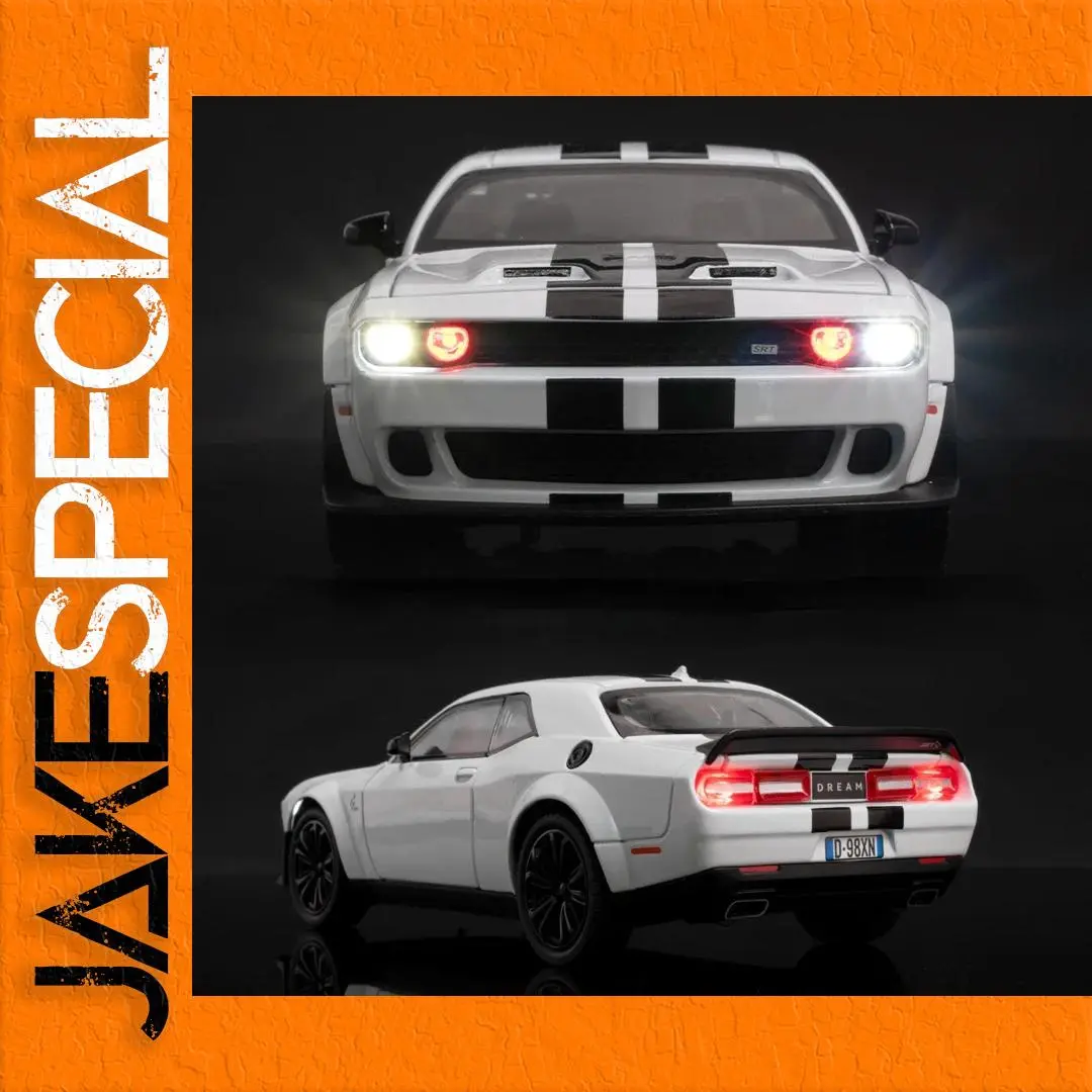 Elevate your collection with this meticulously crafted diecast Dodge Challenger SRT Hellcat model. Its realistic lighting, sound features, and sporty design make it a striking display piece or a dynamic toy for enthusiasts. Built with durable metal and detailed accents, this model is perfect for collectors aged 14 and up. The pull-back action ensures smooth movement, and the available color options let you choose your preferred style. Whether for display or interactive play, this model captures the aggressive spirit of the original supercar, making it a fantastic addition to any collection.