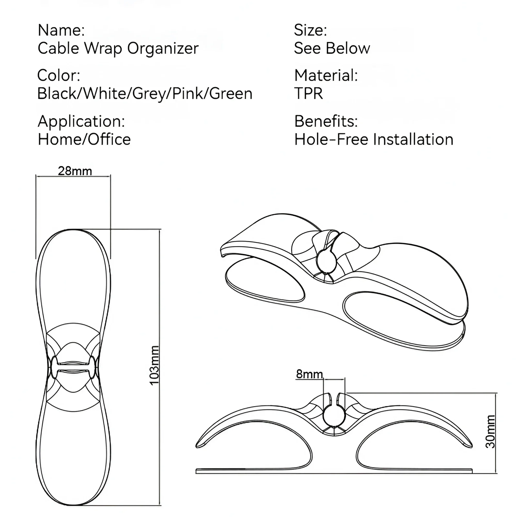 - Made from flexible TPR material, supporting various wire diameters and ensuring durability, bendability, and ease of use across multiple cable types including data and household cords.