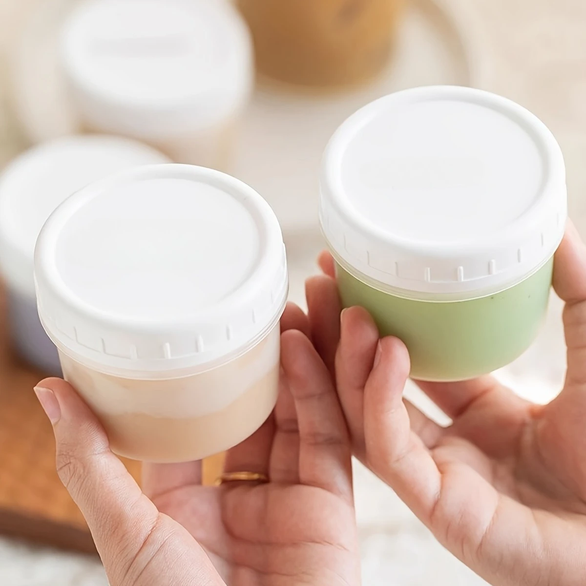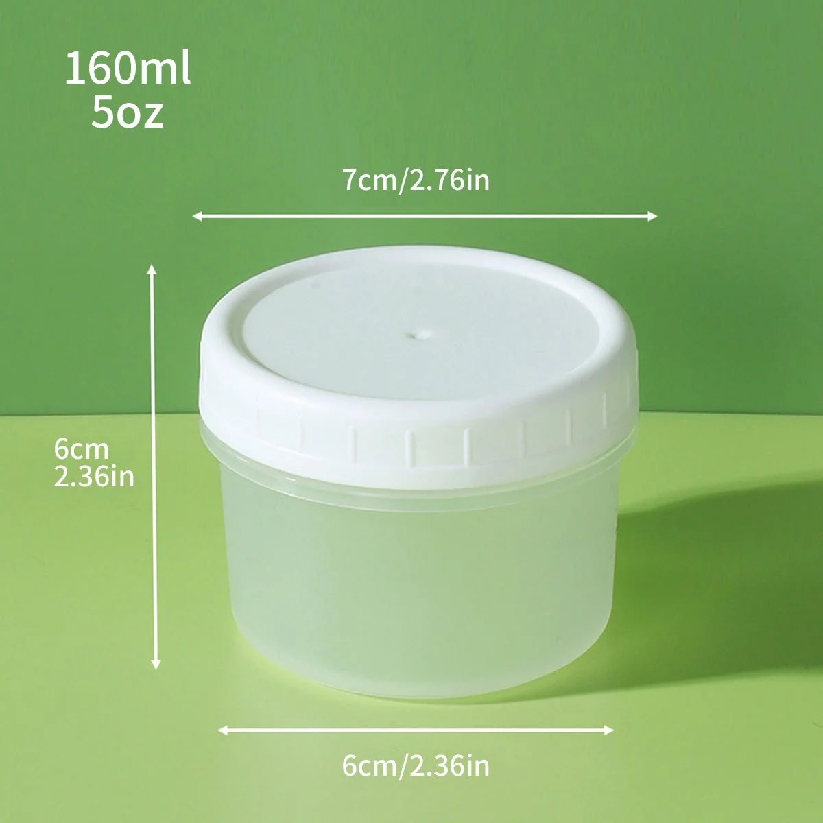This set of five food storage jars in white features two sizes: 160ml and 400ml, with matching flip-top lids for secure, easy access. Made from durable, food-safe polypropylene (PP), these sleek, round jars are perfect for storing yogurt, pudding, ice cream, cereal, fruits, and more. Designed for versatility, they are freezer safe, do not require electricity, and suit a variety of kitchen needs. Compact and modern, these jars combine practicality with an elegant minimalist look, offering a reliable storage solution for your favorite food items while maintaining a clean, contemporary aesthetic.