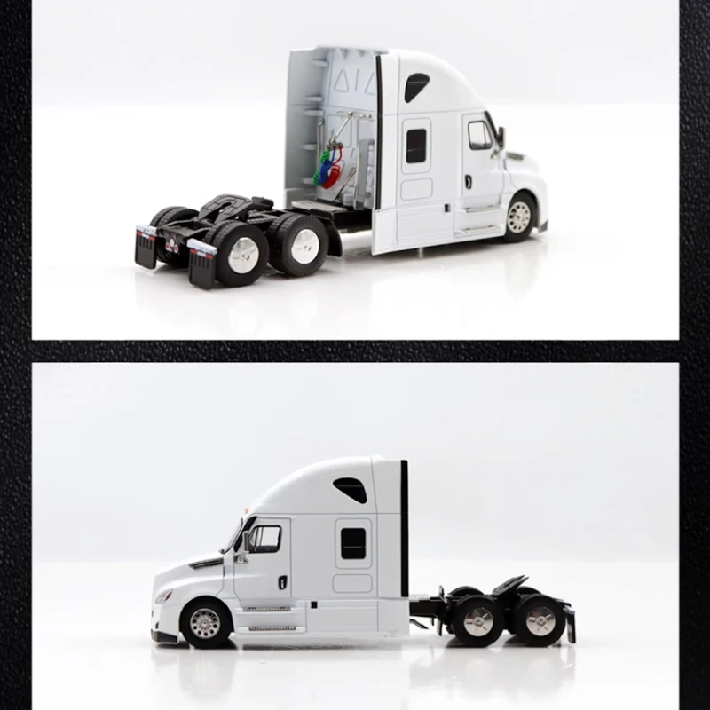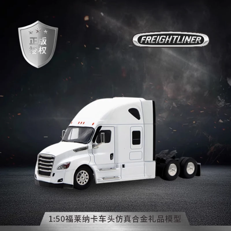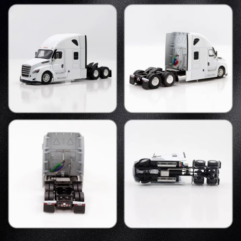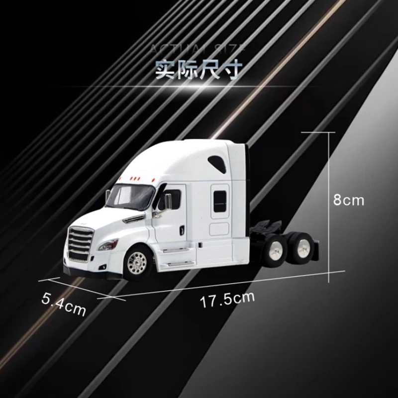 Experience the realism and craftsmanship of this stunning diecast Freightliner truck in a sleek white finish. Crafted with a durable alloy body, detailed resin, and metallic paint, this 1:50 scale model offers exceptional authenticity. Its streamlined design features a prominent black grille and carefully detailed headlights that bring the model to life. The tinted black windshield and side mirrors with refined finishes capture a modern truck's elegance. On the underside, you’ll notice a highly detailed black chassis, metallic engine components, and intricately sculpted rims, showcasing precise engineering. This model is perfect for collectors and enthusiasts who appreciate fine craftsmanship. Its smooth surface and realistic details make it an ideal display piece, a thoughtful gift, or a collectible souvenir for any freightliner or truck aficionado.