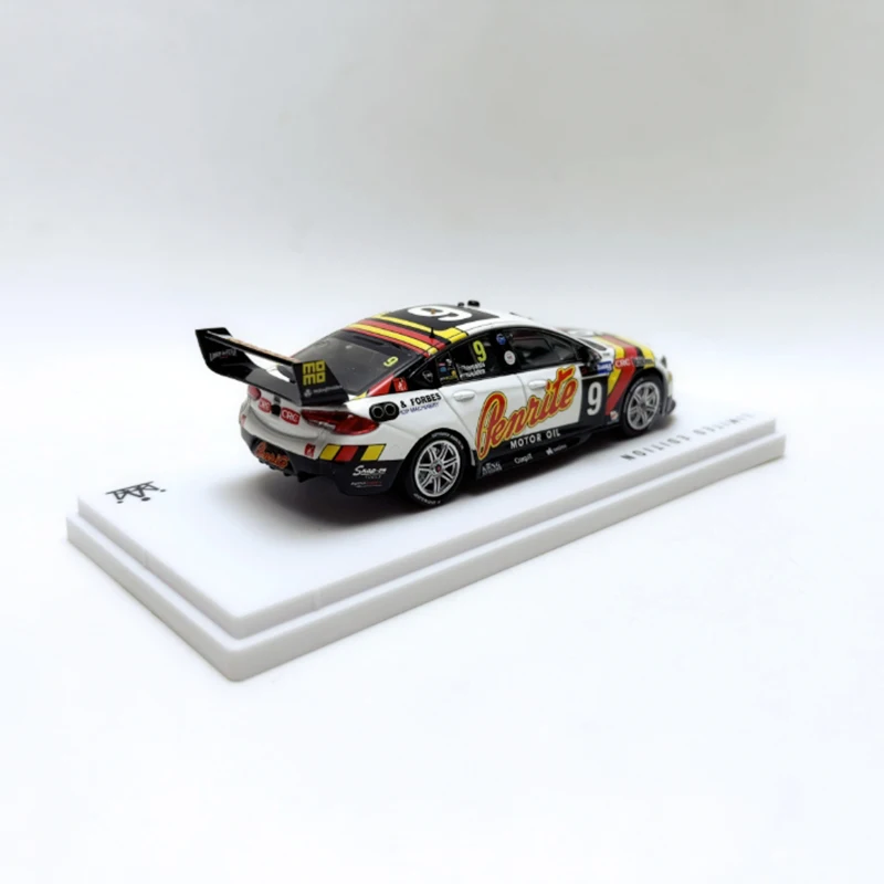 Imagine adding a touch of motorsport excitement to your collection with this beautifully crafted diecast model of the Holden ZB rally car. Boasting a sleek, aerodynamic design, this 1:43 scale replica features a glossy white body highlighted by vivid graphic decals and bold sponsor logos, including the eye-catching orange and red “Fenrite” logo. The sharp racing number “9” is prominently displayed on the doors and hood, creating a dynamic visual appeal. Extra details like a large rear wing spoiler, side skirts, and front splitter enhance its sporty stance. Finished with shiny alloy multi-spoke wheels and transparent windows revealing a subtle interior, this model is perfect for display on a desk, shelf, or office. Crafted from alloy and ABS, it exemplifies meticulous craftsmanship, making it an ideal gift for motorsport enthusiasts.