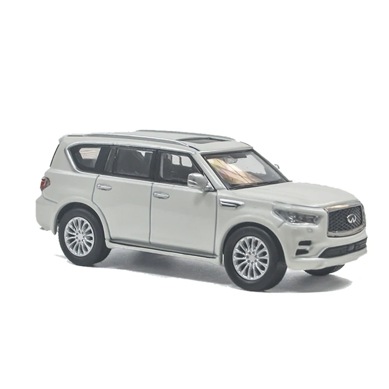 - Beautifully detailed white alloy model replicates the 2020 Infiniti QX80's luxury design with precision and realism, perfect for display and collection enthusiasts. It emphasizes the vehicle’s sleek, boxy silhouette.