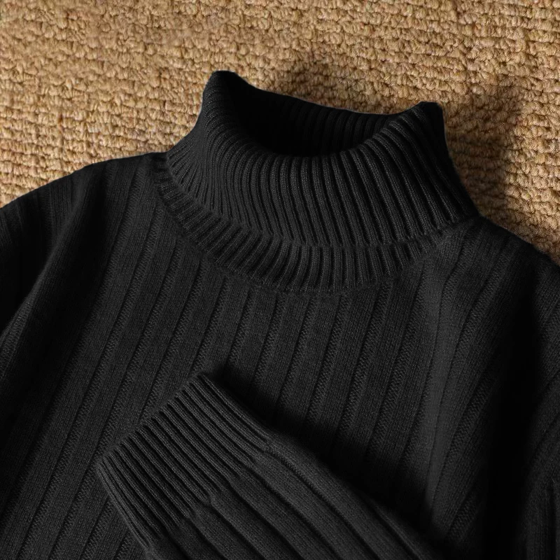 - Classic white color with a textured ribbed turtleneck collar, providing a snug fit and added structure to your overall look.