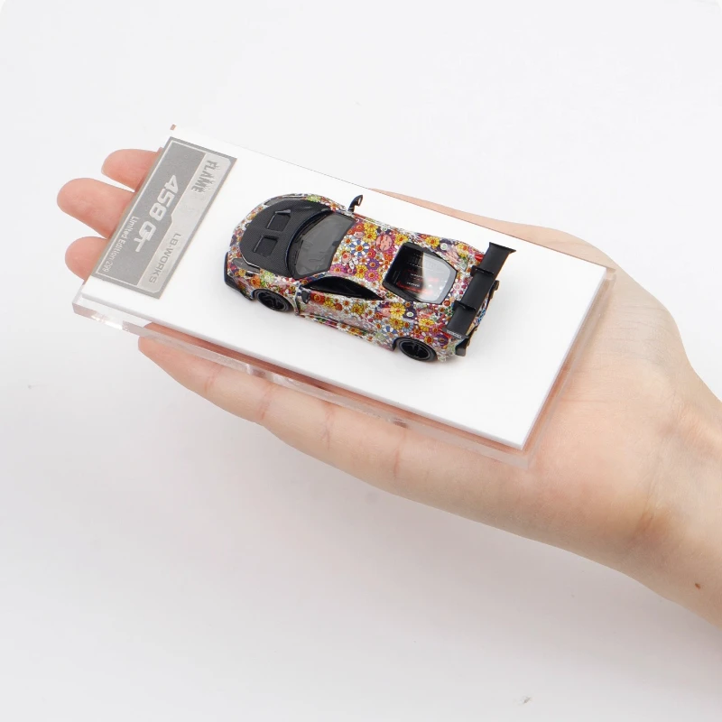Experience the thrill close-up with this meticulously crafted 1:64 scale die-cast resin model of the Lamborghini Huracan GT ADVAN by TAKARA TOMY. Its sleek, aerodynamic design captures every curve and vent, while the darkly tinted windows add a sense of realism. The pristine white finish contrasted by subtle black accents emphasizes its sophisticated racing-inspired style. Perfect for display or collection, this model showcases detailed branding and a prominent rear wing spoiler, evoking the power and precision of real racing cars. Its glossy surface and precise proportions make it a captivating addition to any racing car collection, bringing the excitement of high-performance motorsport into your space.