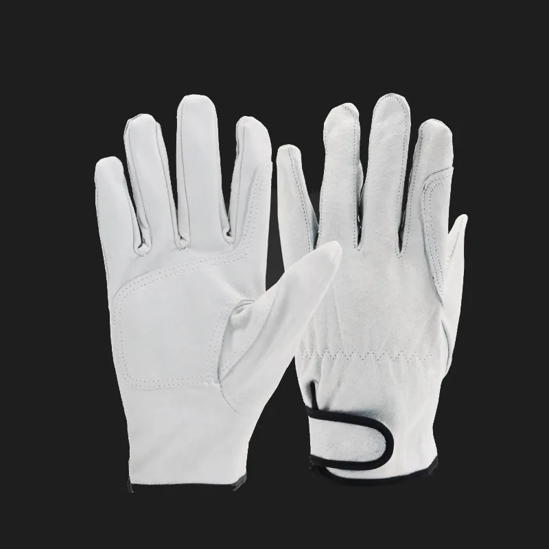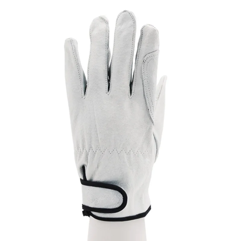 - Technical Specifications: Material: Pigskin leather; Length: 21-23 cm; Size: L; Color: White; Features: Tear-resistant, anti-cut reinforcement, adjustable wrist strap, ergonomic fit.