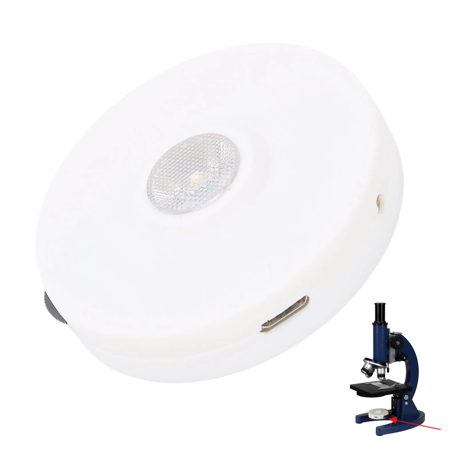 Experience superior illumination with this sleek, white LED microscope light, designed to enhance your microscopy sessions effortlessly. Crafted from durable ABS plastic, its smooth matte finish offers a modern, minimalist appearance that complements any laboratory or educational setting. Its round, flat design features a subtle metallic reflector at the center, providing focused and even light distribution. Equipped with a built-in 120mAh lithium-ion battery, it delivers up to 8 hours of uninterrupted use, perfect for extended research or classroom demonstrations. The intuitive stepless dimming switch allows precise brightness control, while the USB port ensures hassle-free charging. Imagine improved observation clarity every time you switch it on, making your scientific work more precise and enjoyable.