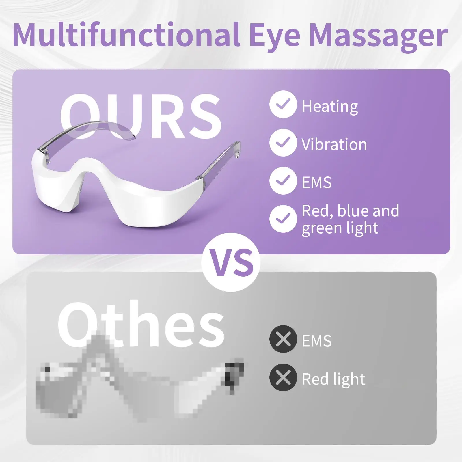 Experience advanced eye care with this sleek white 3-in-1 LED photon under-eye device, featuring red (650nm), blue, and green light to reduce eye bags, dark circles, and puffiness. It combines LED therapy, EMS, infrared, and warm vibration massage technologies to promote relaxation and rejuvenation. Powered by a rechargeable built-in battery via Type-C port, this lightweight, portable device is perfect for daily use, helping to improve appearance, combat fatigue, and provide salon-grade anti-aging results at home. Its ergonomic design with smooth curves ensures comfort, making it an essential addition to your self-care routine.