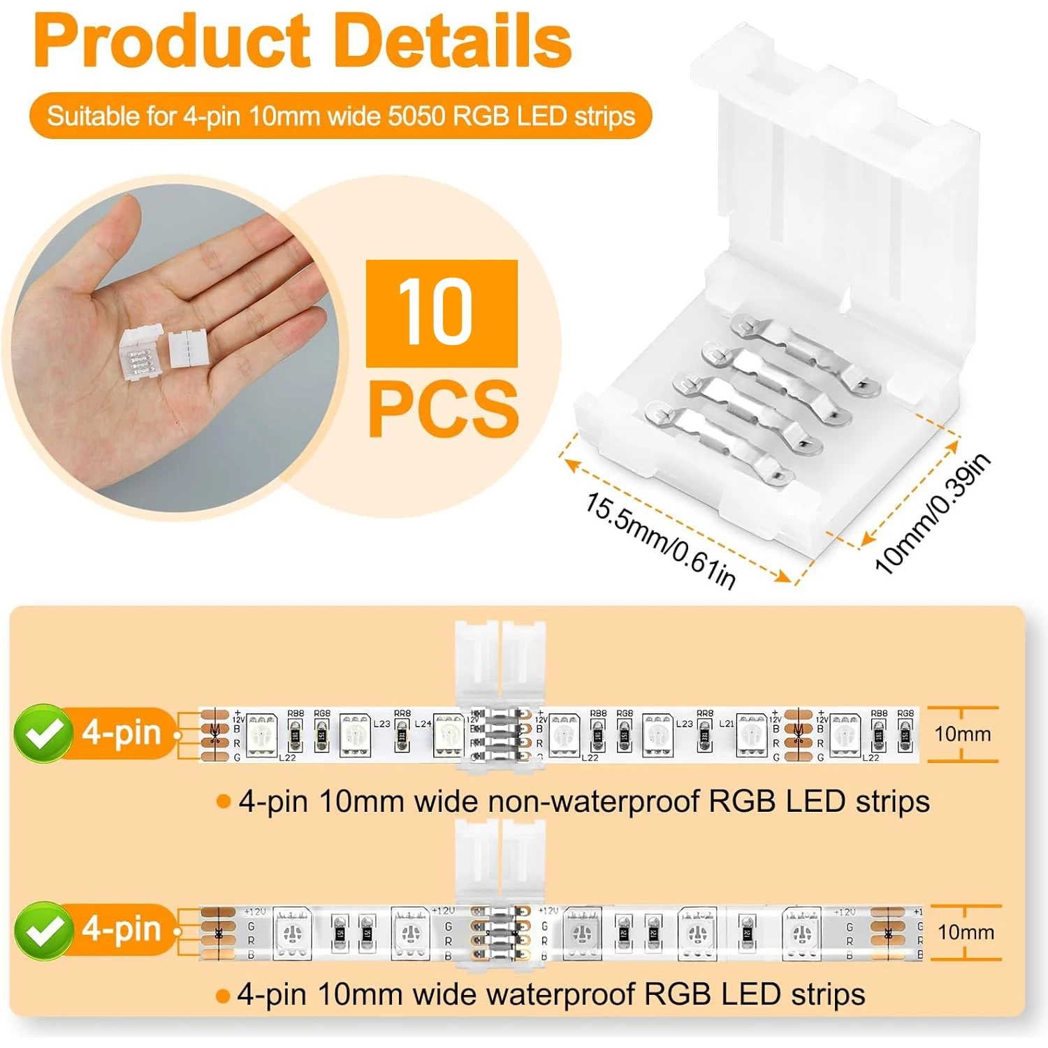 - Built from high-quality plastic with precise internal contact points, these connectors ensure long-lasting, corrosion-resistant electrical connections for your RGB LED installation.