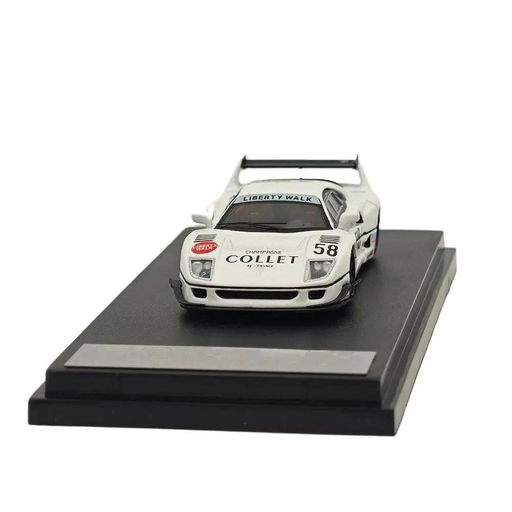 Imagine adding this exquisite diecast metal replica of the Liberty Walk F40 #58 to your collection—its sleek, dynamic design captures the essence of racing precision. The pristine white finish is complemented by sharp black accents and bold red decals, reminiscent of real-life race cars. Intricate sponsor logos such as “Liberty Walk,” “Collet,” and “Advance” enhance realism, making it an impressive display piece. Features like the large rear wing, front splitter, and side skirts add to its sporty, aggressive allure. With meticulously detailed surfaces and realistic proportions, this model combines aesthetic elegance with the thrill of motorsport, perfect for enthusiasts who appreciate craftsmanship and style.