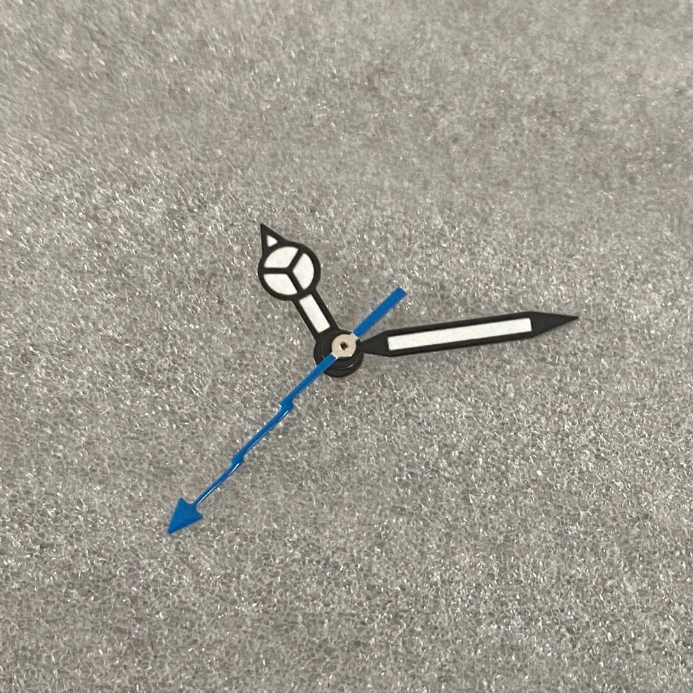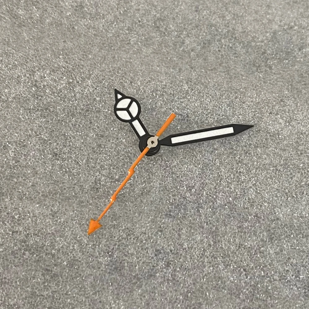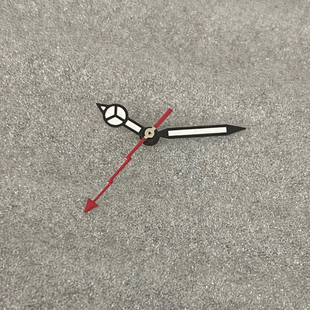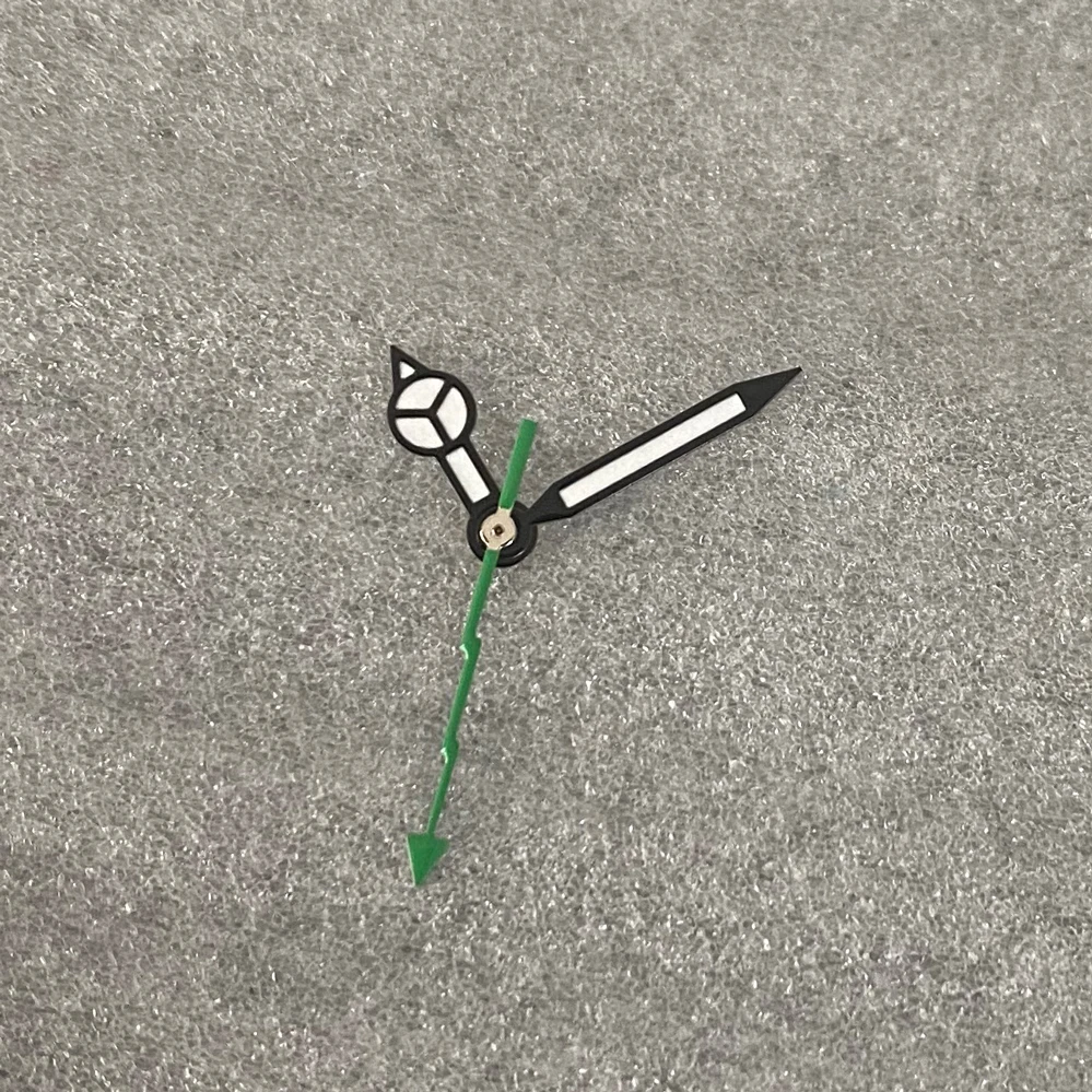 Enhance your watch with this set of brand-new black-edged white hands featuring bright green luminous tips, measuring 7.75 mm in length, 12 mm in width, and 12.5 mm from the center hole to the tip. Designed for precise compatibility with Japanese NH35, NH36, 4R, and 7S movements, these hands are perfect for watch conversions or replacements. The sleek, minimalistic design with luminous accents ensures excellent visibility in low light, while the sharp lines and subtle geometric details add a modern touch. Whether upgrading or repairing, these high-quality hands provide both functional clarity and aesthetic appeal for your timepiece.