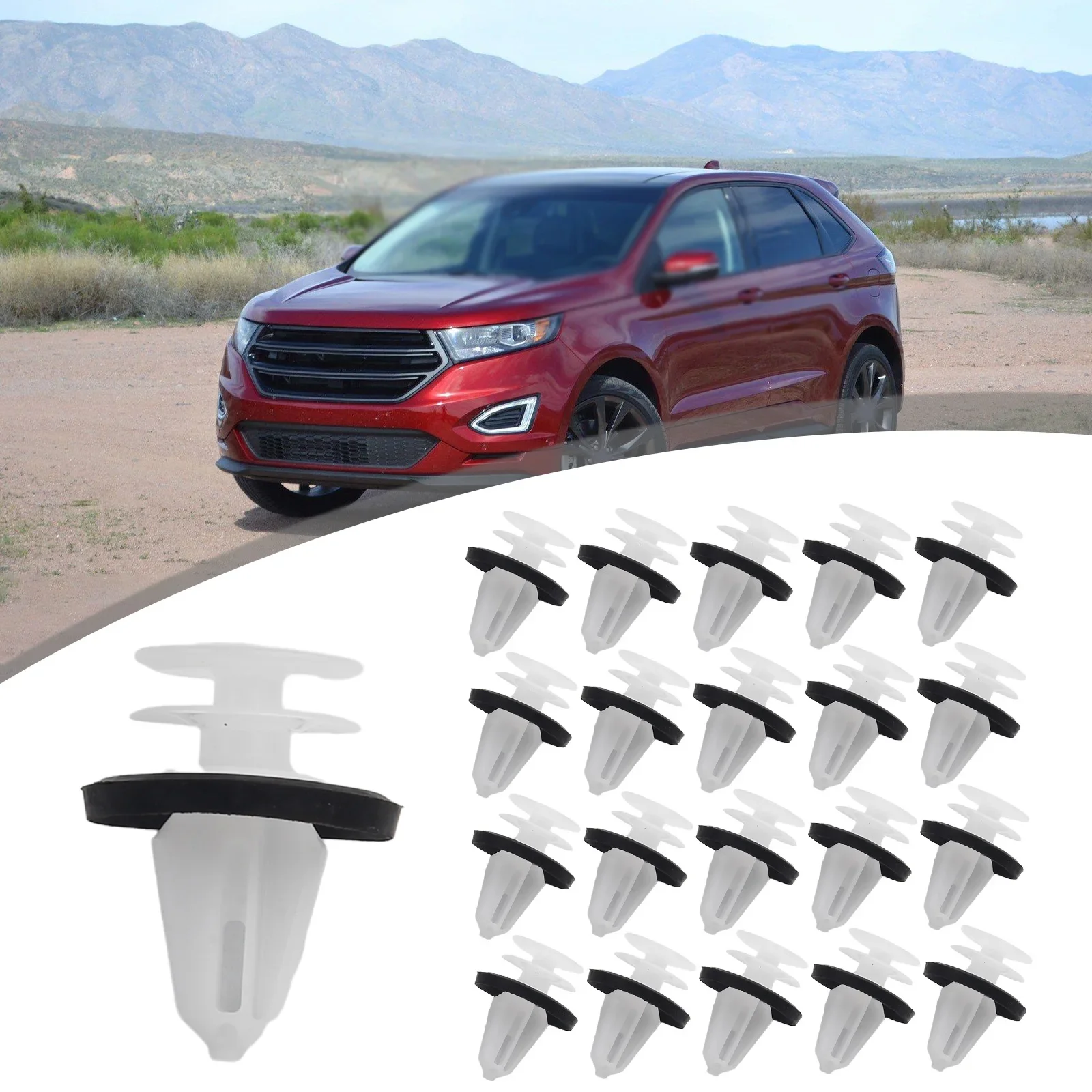 Upgrade your vehicle with these 20 high-quality white nylon door trim panel retainers with seals, designed for durability and precise fit. Crafted from anti-corrosion, wear-resistant materials, each retainer features a flat, broad circular base with a textured surface, a rounded edge for stability, and a short cylindrical protrusion with a narrow neck for secure attachment. Compatible with Ford models matching OE numbers 102540100A, W713297-S300, and 4831516, these retainers ensure a snug, long-lasting hold. Their smooth, sturdy construction prevents deformation, offering reliable performance. Perfect for those seeking a practical, durable solution for maintaining or restoring their vehicle’s interior panels.