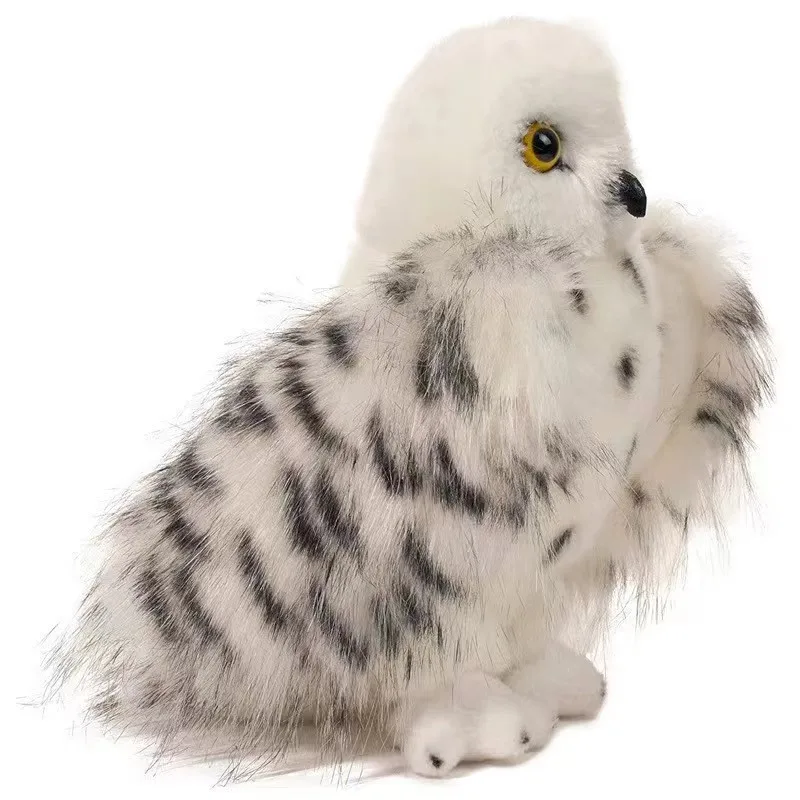 Bring a cozy charm into your space with this the white owl plush toy, designed for both comfort and visual appeal. Measuring 20cm tall, this plush is crafted from high-quality cotton with PP cotton filling, offering a soft, cuddly feel that invites hugs and snuggles. Its realistic yet cute owl features a fluffy, round head, large expressive eyes with yellow irises, and a glossy black beak, creating a playful and endearing expression. The body is plump, covered in smooth white plush fur, accented with black spots on the chest and belly that mimic an owl's natural markings. Rounded, fluffy wings feature darker streaks, adding depth and realism. Its tiny, paw-like feet complete the adorable, plush look. This plush makes a perfect gift or decor piece for fans of TV and movie characters, guaranteed to bring warmth and joy to any room.