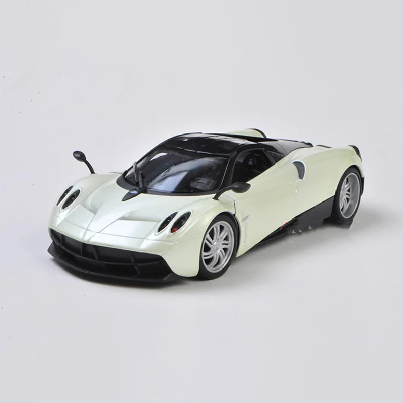 Experience the impressive craftsmanship of this diecast 1:24 scale Pagani Huayra model, measuring 17×8×7.5 cm, crafted from durable alloy for a sleek, high-performance look. Featuring a glossy white finish with black accents, elongated headlights, a wide black grille with air intakes, black-tinted windshield and roof, sculpted side profiles, and detailed silver multi-spoke wheels with low-profile tires, this static display captures the futuristic and elegant essence of the luxury sports car. Designed for collectors and enthusiasts aged 14 and above, it’s a fragile, finely detailed model perfect for display, decoration, or as a sophisticated gift—reminding you of the beauty and precision of automotive engineering.
