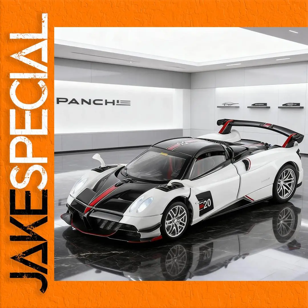 - High-precision 1:32 scale alloy model, showcasing the true proportions and sleek design of the Pagani Huayra BC with detailed aerodynamic features and sporty accents.