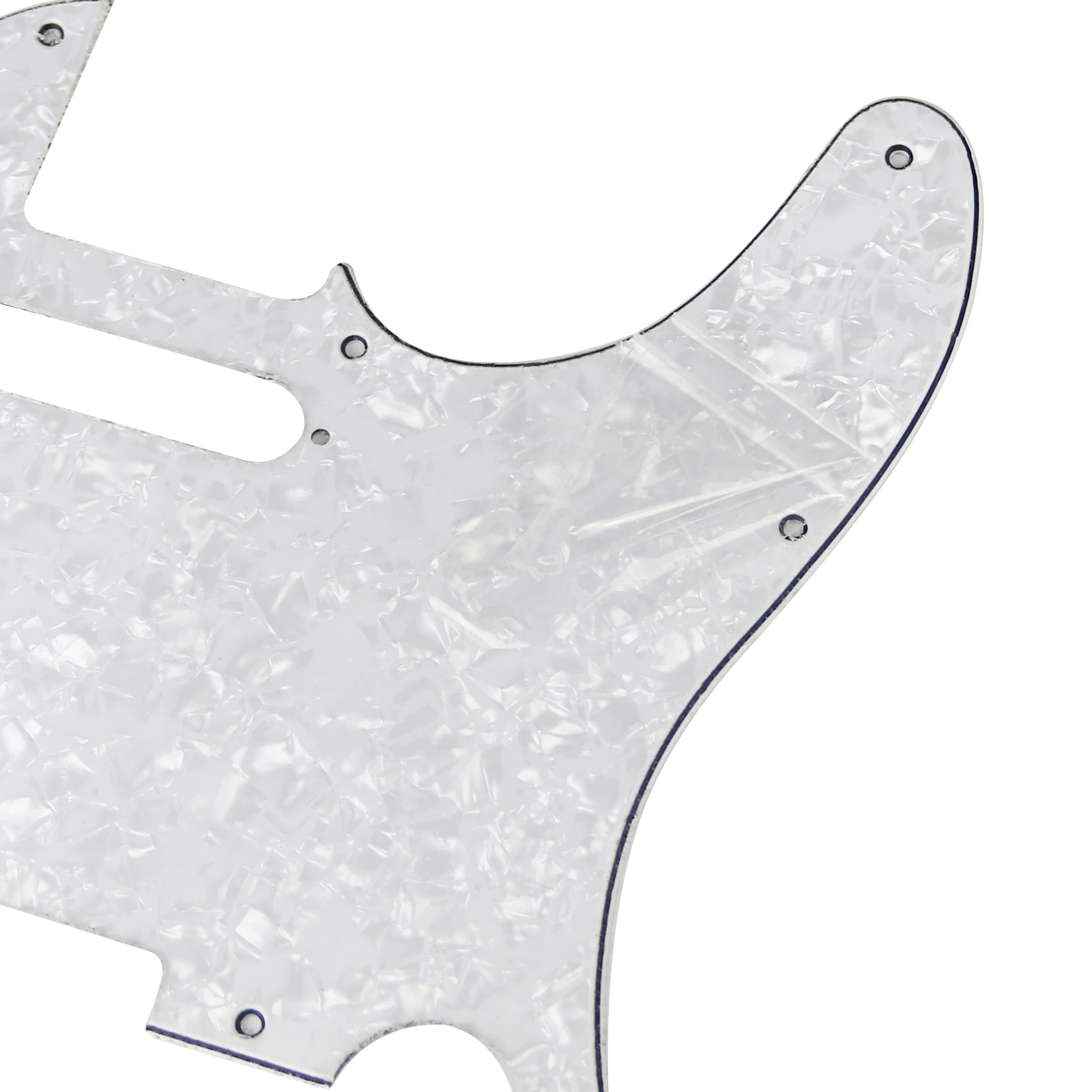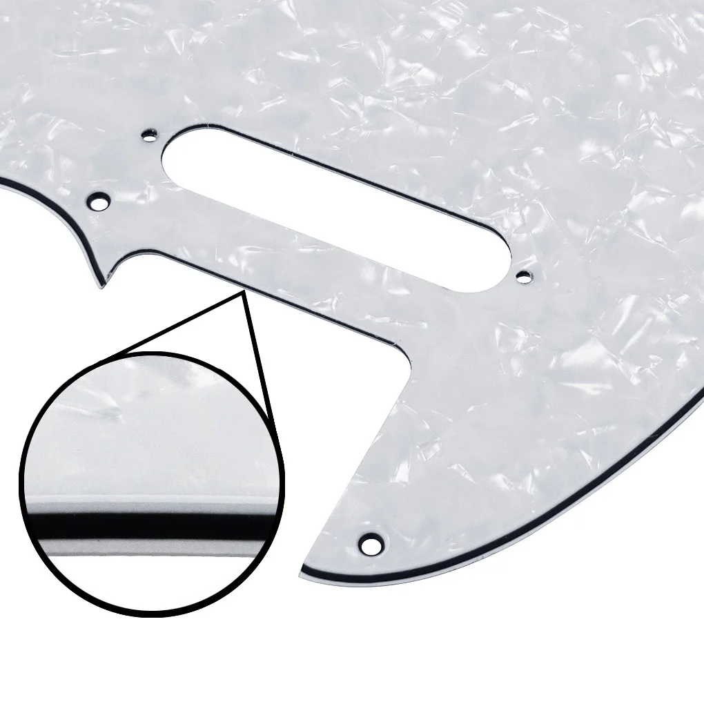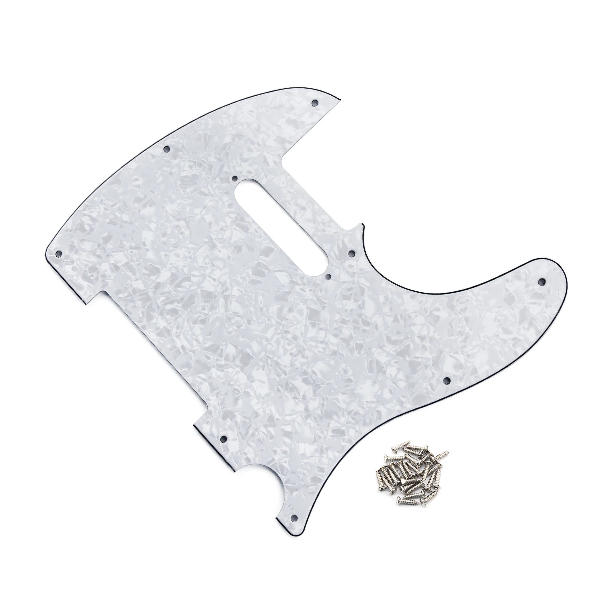 Enhance your guitar's look and protection with this stunning white pearl-colored pickguard. Crafted from high-quality PVC and celluloid layers, it features a glossy, iridescent finish that radiates sophistication. Designed specifically for American and Mexican standard Fender-style Telecaster guitars, this four-ply pickguard offers both durability and aesthetic appeal. Its smooth, polished edges reflect excellent manufacturing standards, ensuring a seamless fit and clean appearance. The layered pearl surface creates a luminous, shimmering effect that complements any guitar style, adding a touch of elegance to your instrument. With its durable construction and attractive finish, this pickguard makes your guitar stand out both visually and functionally.