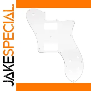Experience the perfect combination of style and function with this sleek white pickguard designed specifically for Made-in-Mexico Fender 72 Tele Deluxe style electric guitars, crafted from 2004 to today. Its smooth, glossy surface highlights a clean, polished look that seamlessly complements your guitar's aesthetic. The irregular, asymmetric shape adds a touch of visual interest, emphasizing your instrument's unique personality. Equipped with 15 precise mounting screw holes and two uncovered humbucker cutouts, this pickguard offers easy installation and compatibility. The underlying aluminum foil shielding ensures excellent electromagnetic noise reduction for a cleaner sound. Its durable plastic construction measures approximately 2.3mm thick, providing reliable protection and style for your cherished guitar. Upgrade your instrument with this elegant and functional component.