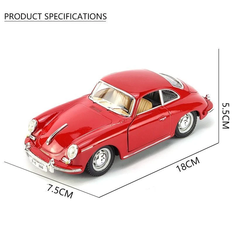 - Scaled at 1:24, faithfully representing the proportions of the real Porsche 356B Coupe with precise details in size and design.