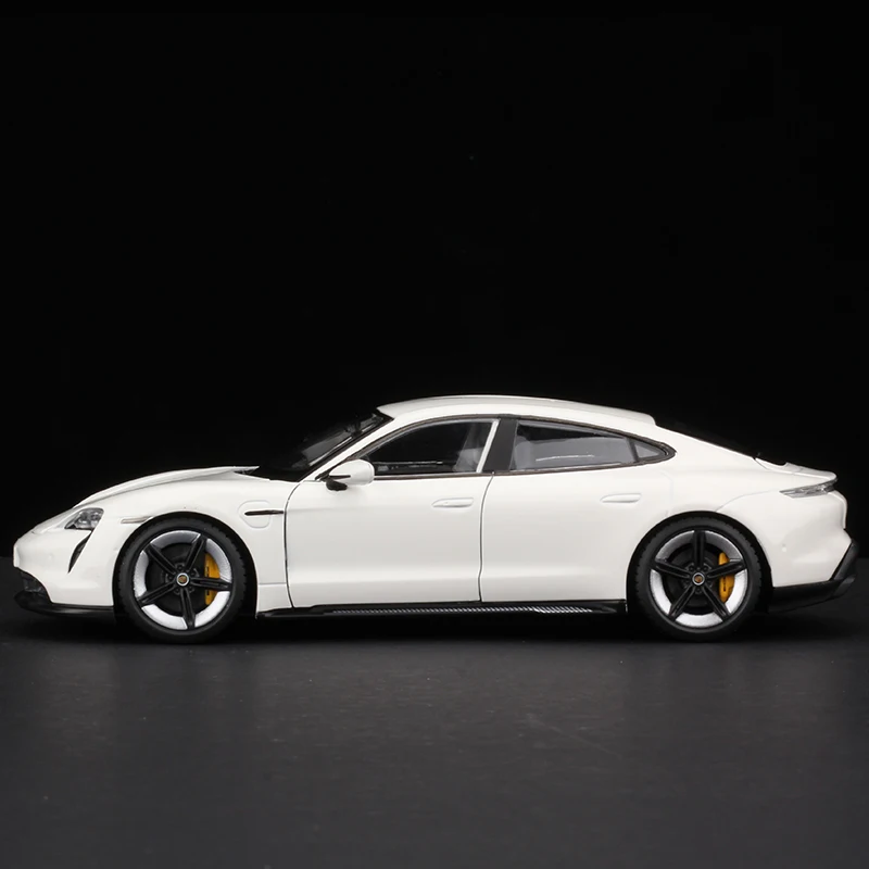 Experience the thrill of owning a stunning replica with this detailed white Porsche Taycan Turbo S miniature. Perfect for collectors or enthusiasts, this 1:24 scale die-cast model captures the sleek, aerodynamic design of the real car, reflecting a glossy finish that shines under light. Its sculpted lines, flush door handles, and angular headlights add a touch of realism and sophistication. The black multi-spoke wheels contrast beautifully with the white body, while visible brake calipers enhance the sporty feel. Tinted windows and aerodynamic side mirrors complete the high-tech look. Whether displayed on a shelf or used as a thoughtful gift, this model exudes elegance and precision, making it an eye-catching addition to any collection or car display setup.