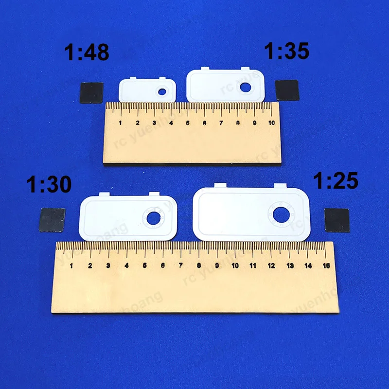 - Set includes 10 white doors available in four sizes: 1:25 (67x32mm), 1:30 (56x27mm), 1:35 (48x23mm), and 1:48 (35×16.7mm).