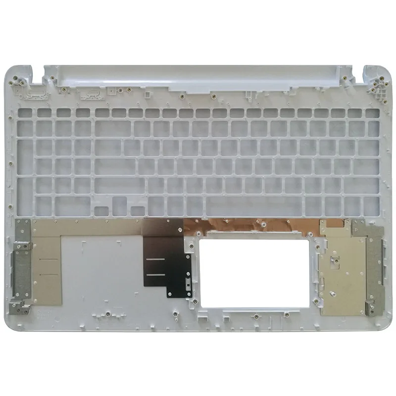 Enhance your Sony Vaio laptop with this high-quality white replacement top cover, compatible with models SVF15, SVF151, SVF152, SVF153, and SVF1541. This kit includes the LCD back cover, bezel, palmrest upper, and bottom case, all designed with a sleek, modern aesthetic featuring a smooth, reflective metallic silver surface on the main cover and a durable black outer frame. The light gray palmrest and bottom case showcase a subtle ventilation grid and precise rectangular cutouts, combining minimalist elegance with functional design. Ensure a perfect fit by confirming your device model, keyboard layout, size, and color before installing this premium replacement part.