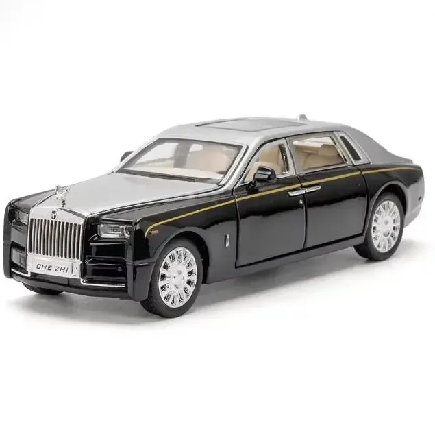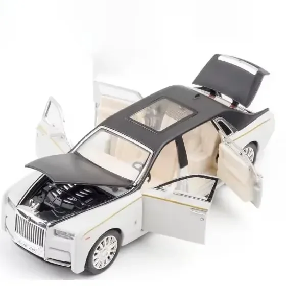 Experience the luxury of the 1:32 scale Rolls-Royce Phantom diecast alloy model, measuring approximately 17-17.5 cm in length, 6 cm in width, and 4.5-5 cm in height. Crafted with a durable metal body, plastic chassis, and textured rubber tires, this meticulously detailed replica features functional opening doors, pull-back motion, lighting, and music. Available in striking colors such as black, white, pink, silver, and green, it embodies sophisticated craftsmanship and realism. Designed for collectors and enthusiasts aged 14 and up, it makes an ideal gift or display piece, combining high simulation with strong durability for lasting enjoyment.
