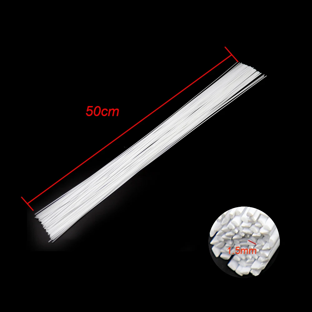 - Technical specifications: ABS plastic material, lengths of 50cm, diameters of 1mm, 1.5mm, 2mm, 3mm, and 4mm, color white, lightweight, and easy to work with.
