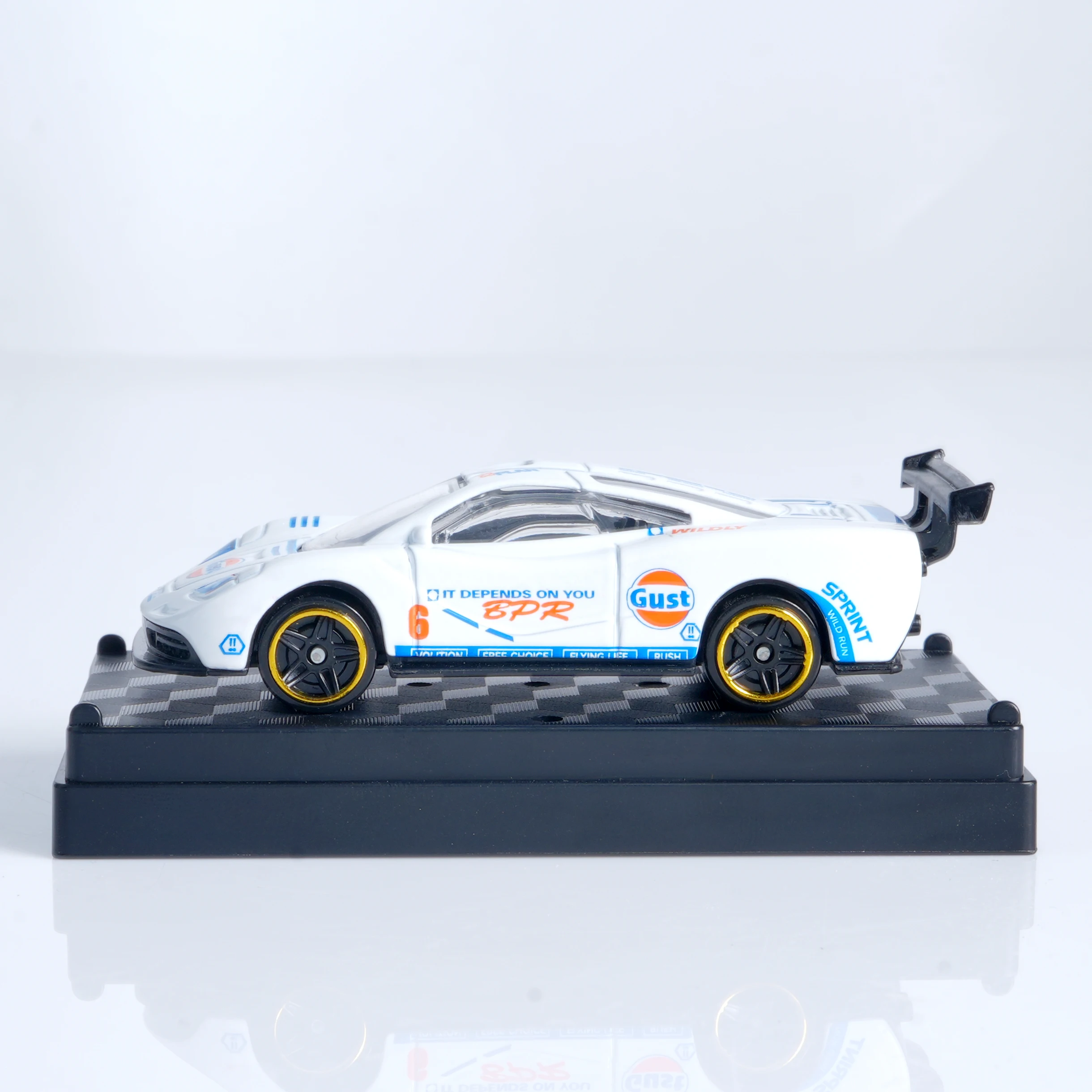 Experience the thrill of high-speed racing with this 1:64 scale die-cast sports car model, featuring a sleek white body accented with vibrant decals in shades of blue, orange, and black. Crafted from durable metal, this non-electric collectible showcases detailed racing graphics, blue-tinted headlights, black wheels with gold rims, and a prominent rear spoiler, all adding to its dynamic, realistic appearance. Designed for adult collectors and enthusiasts, it measures approximately 1:64 in scale and is CE certified, making it ideal for desktop display, decoration, or gifting for racing fans and hobbyists who appreciate fine craftsmanship and sporty aesthetics.