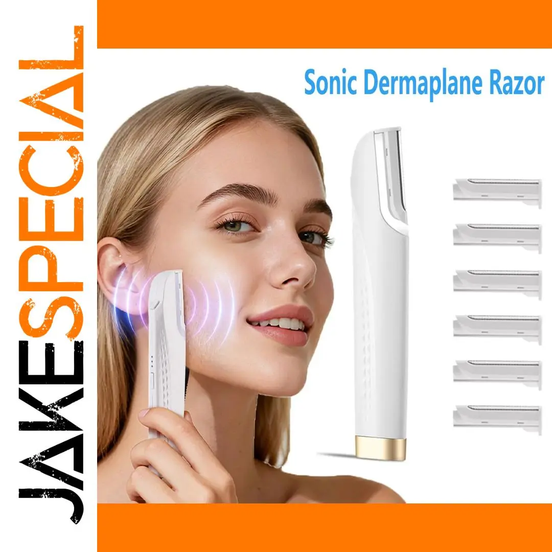 Experience smooth, radiant skin with this sleek white sonic dermaplaning razor featuring a modern design and ergonomic shape. Equipped with 3 adjustable sonic speeds, a powerful 12,000 rpm motor, and an automatic LED fill light, it ensures precise hair removal and face exfoliation. The device includes 6 washable, replaceable blades for hygienic long-term use, and a semi-automatic safety lock prevents accidental blade release. Powered by a 90mAh lithium polymer battery, it offers up to 70 minutes of cordless operation after just 45 minutes of charging via Type-C port. Its compact ABS construction and innovative triangular stand make it as convenient as it is effective.