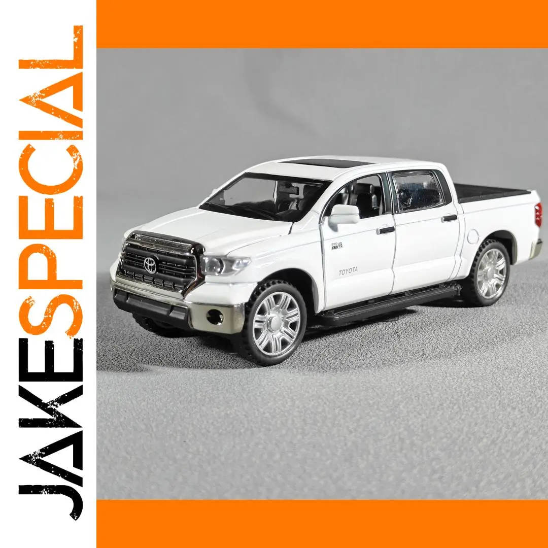 Experience the pride of owning a highly detailed miniature of the iconic Toyota Tundra in a sleek white finish. Crafted with precision, this 1:32 scale diecast model captures the essence of the full-sized pickup, showcasing a realistic grille with a Toyota emblem, sharply defined headlights, and metallic silver accents on the bumper. The black side mirrors, door handles, and running boards create a bold contrast that adds to its visual appeal. The textured truck bed, taillights with red and clear plastic elements, and alloy wheels with pronounced treads make this model a true collector's piece. Perfect for display, it offers a premium feel with its high simulation fidelity and intricate craftsmanship, bringing authenticity to your space or collection.