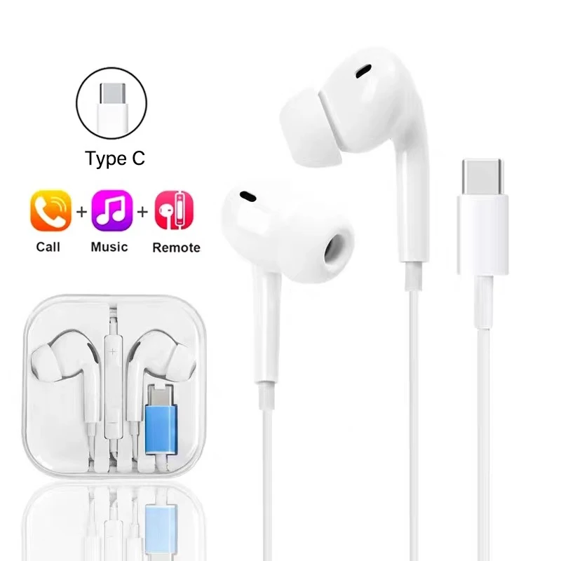Experience high-quality audio with these this wired in-ear earphones, designed to deliver clear sound and versatile connectivity. Crafted from durable plastic, they feature a smooth, rounded design that comfortably fits your ears. The earphones support multiple connection types including 3.5mm jack, Type-C, and wireless Bluetooth, making them compatible with a wide range of devices like iPhone models and more. The slim cable integrates intuitive control buttons for volume adjustment (+ and –) and multifunctional use, such as play, pause, or calls. Equipped with a high-definition microphone, noise isolation, and stereo sound, these earphones ensure an immersive listening experience. Their minimalist aesthetic blends style and functionality seamlessly for everyday use or on-the-go convenience.