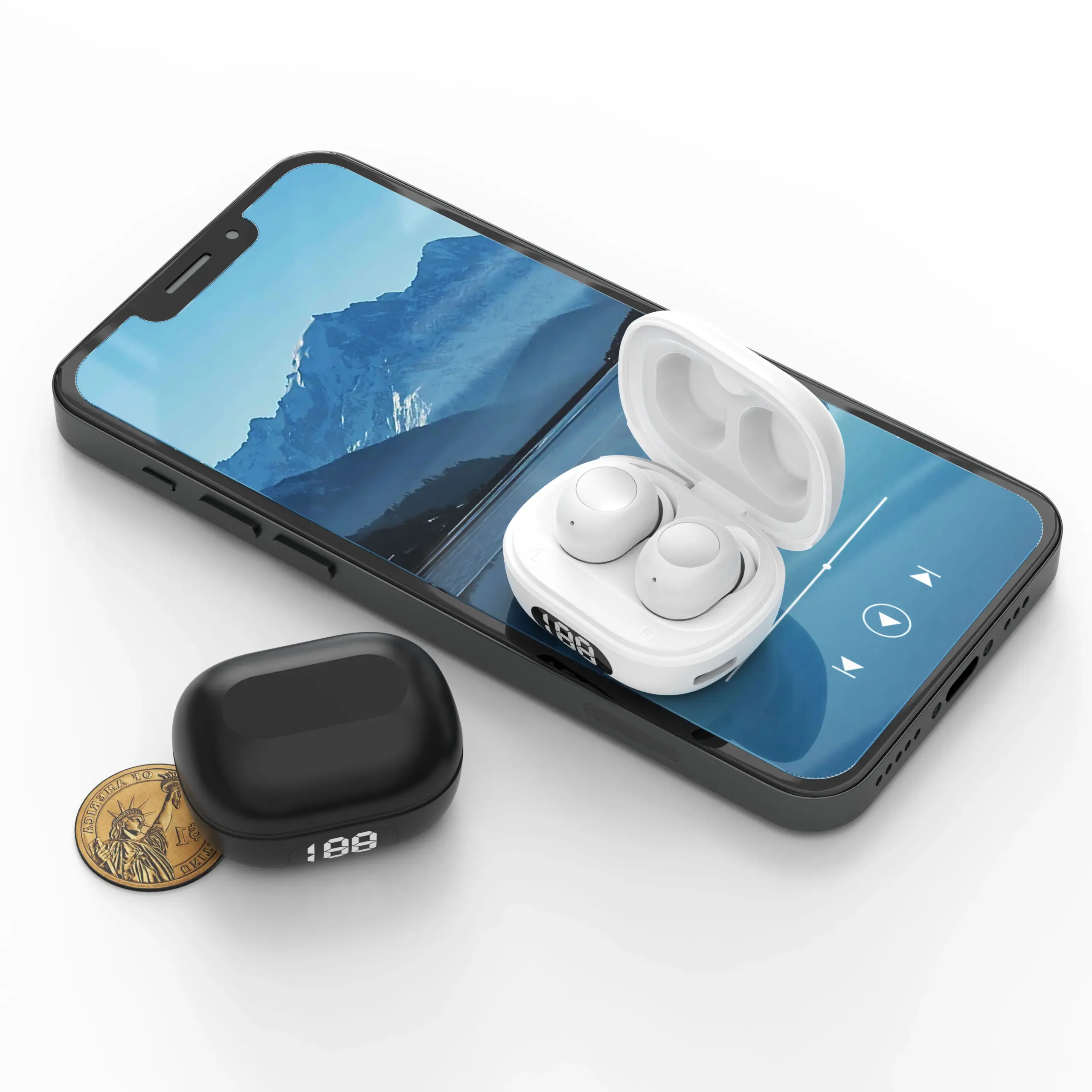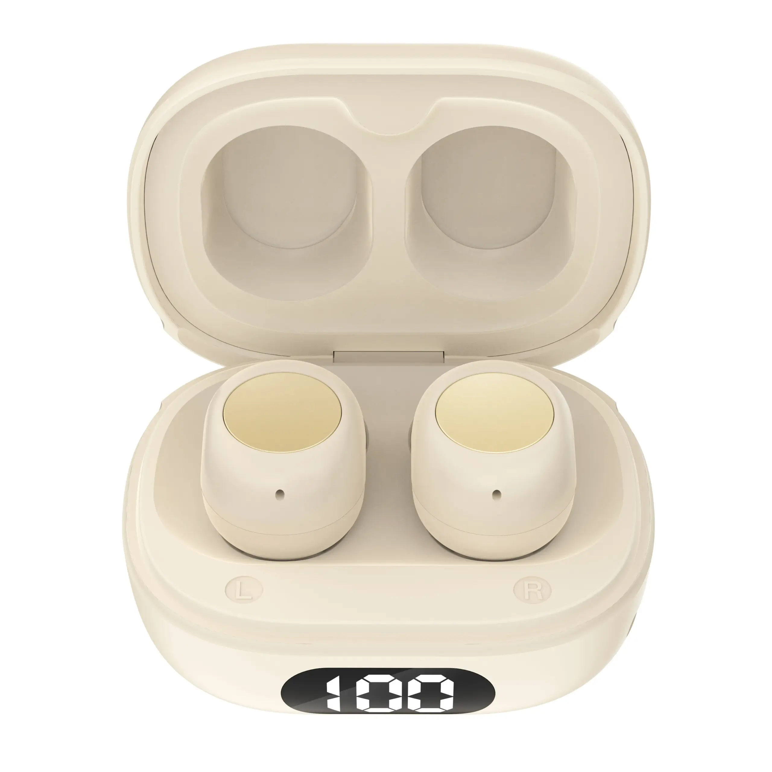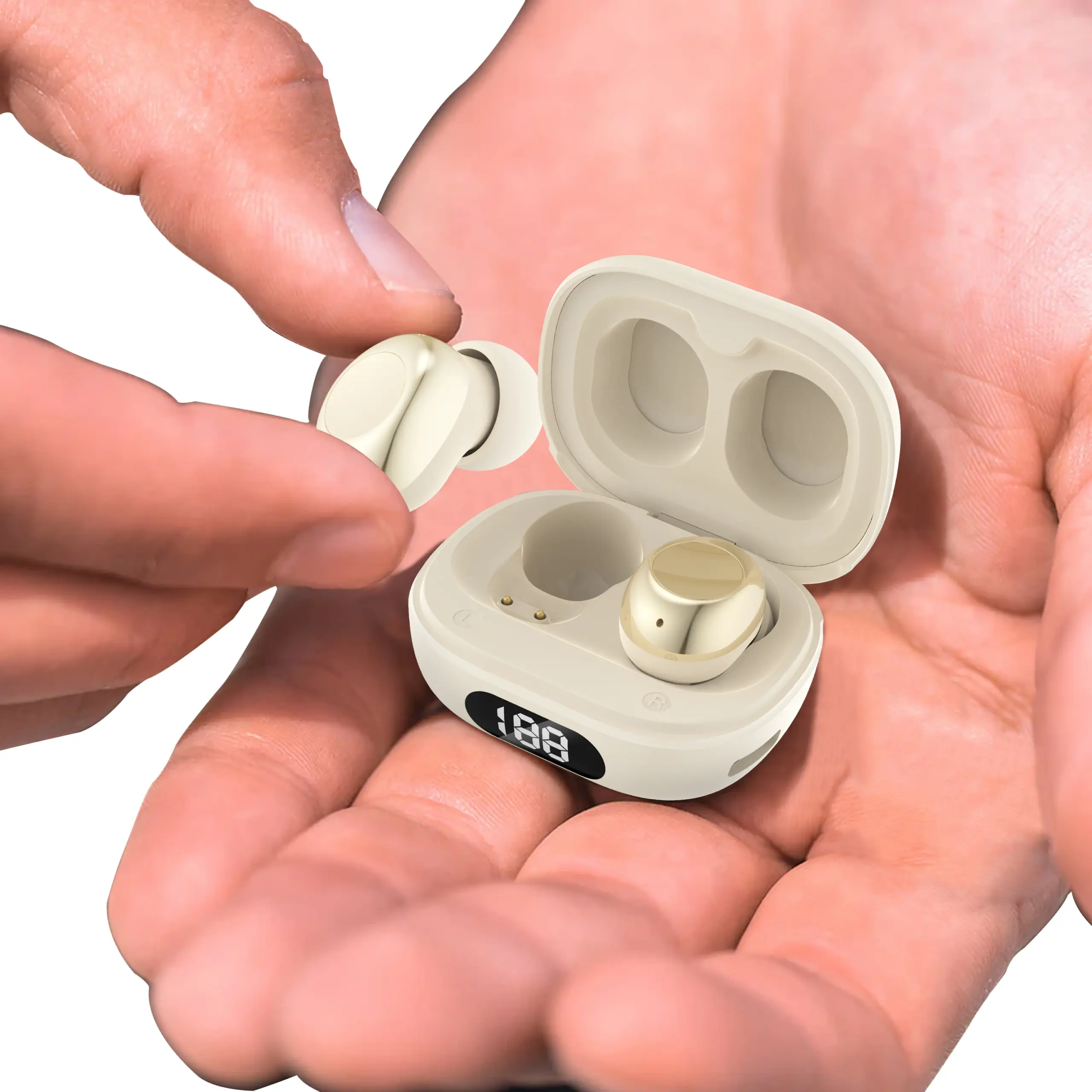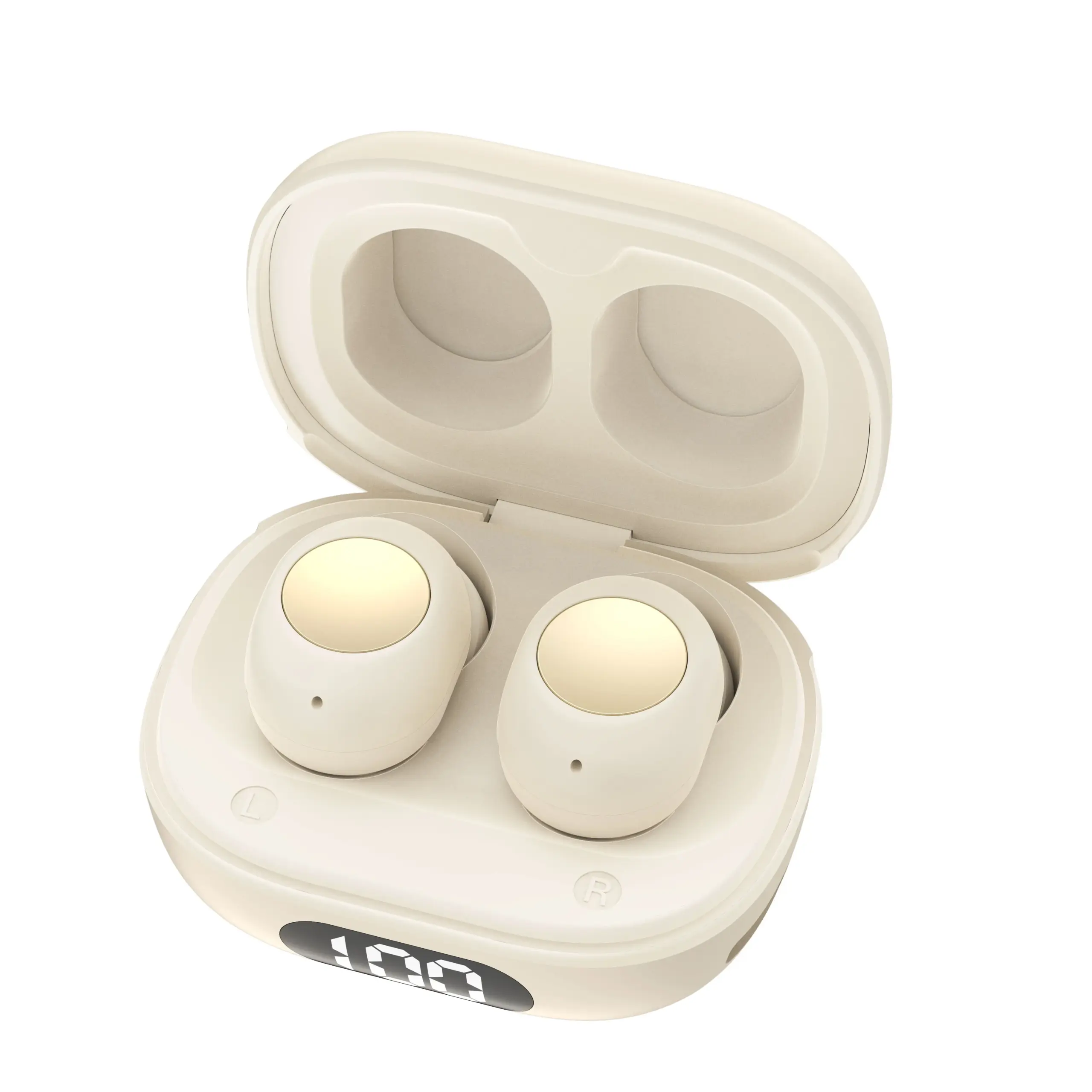 Experience the seamless blend of modern design and advanced technology with this pair of white wireless in-ear earphones. Their sleek, minimalist oval shape features a smooth matte finish, exuding sophistication and style. Ergonomically contoured for a comfortable fit, they come with white silicone tips for secure wear and sound isolation. The outer surface boasts a large, round, metallic-looking touch control panel in silver or gray, adding a subtle futuristic flair. These earbuds are designed to be truly wireless, emphasizing portability and convenience. Whether you're gaming, making calls, or listening to your favorite music, they deliver exceptional sound clarity, active noise cancellation, and long-lasting battery life for all-day use. Elevate your daily audio experience with this premium device, perfect for on-the-go lifestyles.