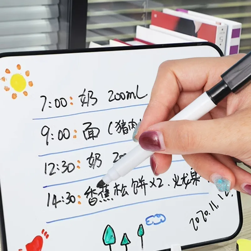 Imagine effortlessly creating professional presentations or jotting down ideas with this set of sleek whiteboard markers. Designed with a minimalist aesthetic, these pens feature a crisp white cylindrical body contrasted by stylish black caps and clips, adding a modern touch to your workspace. The fine 0.5mm fiber nib delivers precise, detailed lines perfect for writing and drawing on desktops or small whiteboards. Their lightweight, portable design ensures comfort even during extended use. The smooth ink flow guarantees clean, smudge-free results every time, while the built-in felt eraser allows quick corrections. Whether for home, school, or office, these markers blend functionality with refined style to elevate your whiteboard experience.