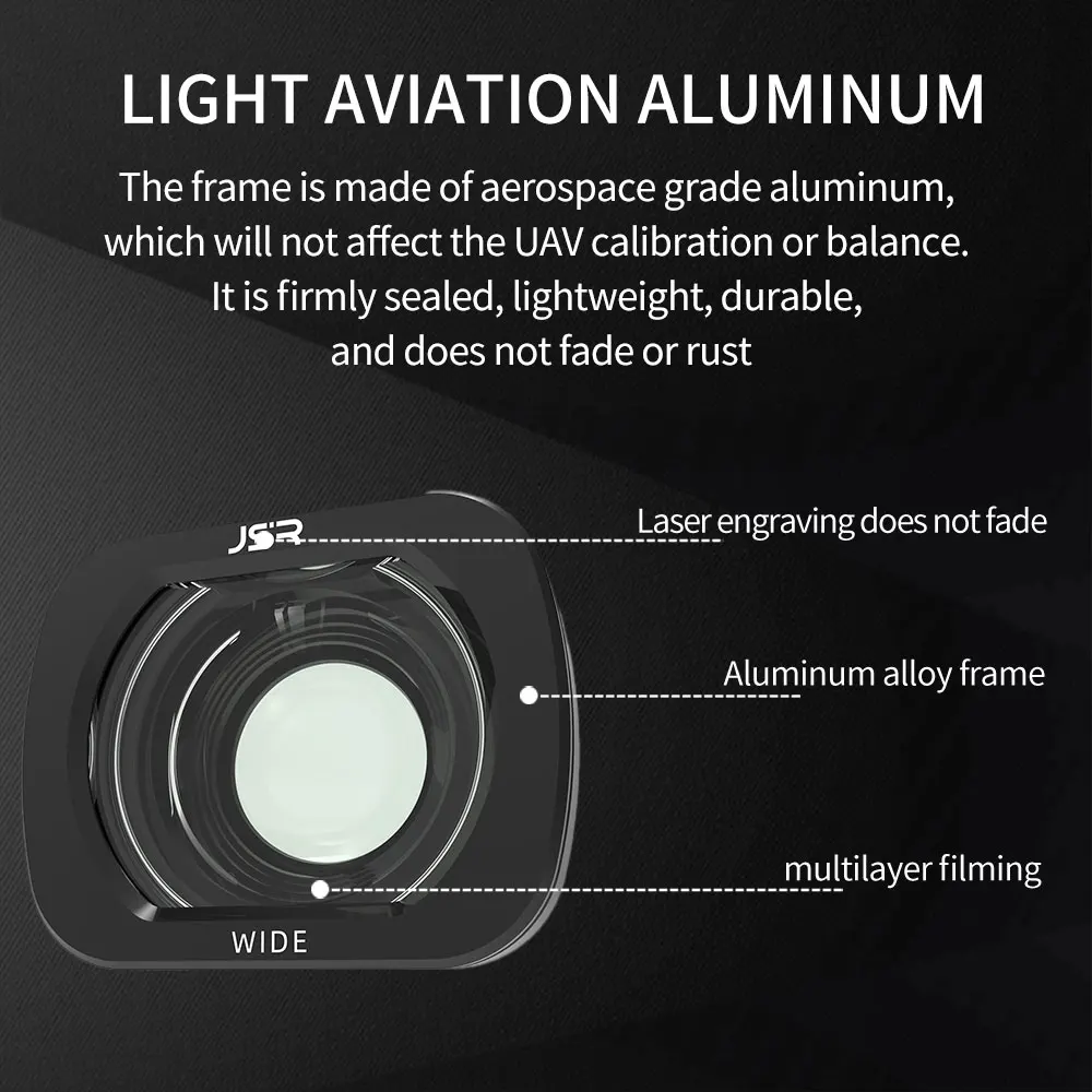 - Wide-angle design optimizes field of view, capturing expansive aerial shots with minimal distortion and excellent light control.