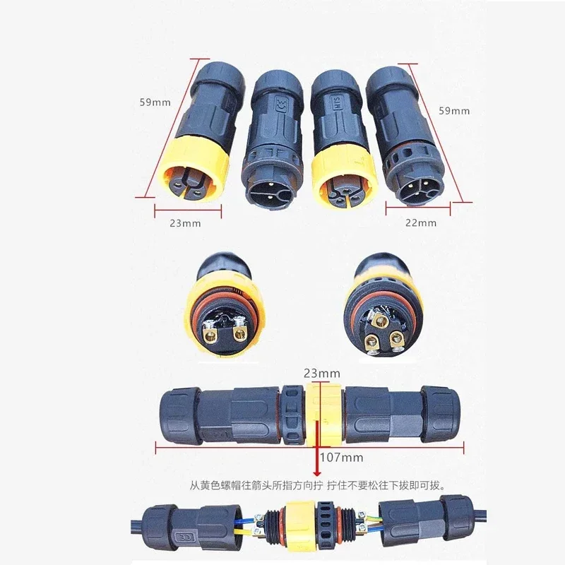 Imagine effortlessly connecting high-power electrical devices outdoors with this robust waterproof connector. Designed by WidsEy, this 25A connector features a sleek black body accented with vibrant orange details, making it easy to identify and handle. Its cylindrical shape offers textured grips for secure, comfortable handling. The connector’s sturdy threading areas and sealing features ensure a waterproof IP67/IP68 rating, protecting your connections from environmental elements. The internal gold-colored contacts promise reliable electrical conduction. Its screw locking mechanism guarantees a secure, stable connection, ideal for outdoor applications. Available in 2-pin or 3-pin configurations, it seamlessly combines durability, safety, and ease of use, making your electrical setup more reliable and efficient for high-power outdoor projects.