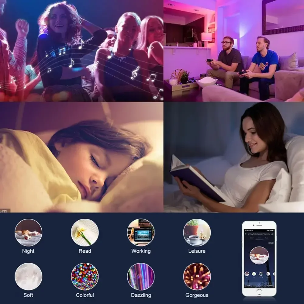 - Integrated features include custom modes, favorite colors, and music dance effects to enhance your lighting experience and create vibrant atmospheres seamlessly.