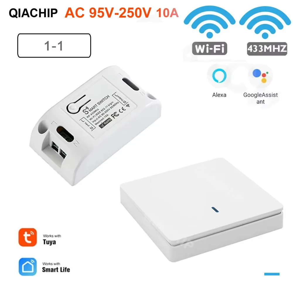 Experience a seamless upgrade to your smart home with this sleek WiFi smart switch, designed for modern aesthetics and superior functionality. With its minimalist rectangular shape, clean white finish, and smooth surface, it effortlessly blends into any wall decor. Equipped with a subtle horizontal blue LED indicator, it offers a modern touch while providing real-time status updates. Easy to install, it connects to 2.4GHz IEEE 802.11 b/g/n networks and supports remote control via the free “Smart Life” app on iOS and Android devices. Enjoy scheduling, timers, scene control, and voice operation with Alexa, Google Home, and IFTTT. Complemented by a compact 433MHz wall panel transmitter, it offers flexible control options within a 20-meter indoor and 80-meter outdoor range, making your smart home smarter and more intuitive.