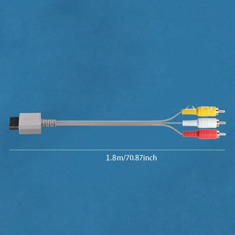 Experience seamless connectivity with this high-quality grey AV extension cable designed specifically for Wii game consoles. Measuring 1.8 meters, it offers ample length for flexible setup, allowing you to enjoy your gaming experience without awkward cable limitations. The cable features durable insulation for long-lasting use and flexibility, making setup and movement effortless. The black, rectangular connector with ridged surface ensures a secure grip for easy plugging and unplugging. The three RCA connectors—white, yellow, and red—are compact and polished, each with shining gold-plated tips that improve conductivity and resistance to corrosion. Ideal for connecting your Wii to TVs or monitors, this cable combines reliable performance with a clean, professional look for an enhanced gaming environment.