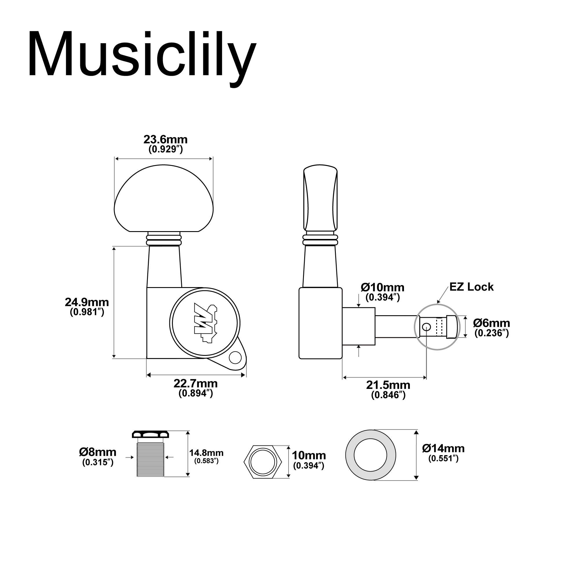 Experience the difference a high-quality set of tuners can make. Improve tuning stability, increase durability, and elevate your guitar’s appearance today. Whether you're upgrading or replacing, these Wilkinson 3R3L tuners are crafted to meet your performance needs with a sleek, professional aesthetic. Your guitar deserves the best—luxury, durability, and precision in every turn. Don't wait—transform your instrument and enjoy flawless tuning for years to come.