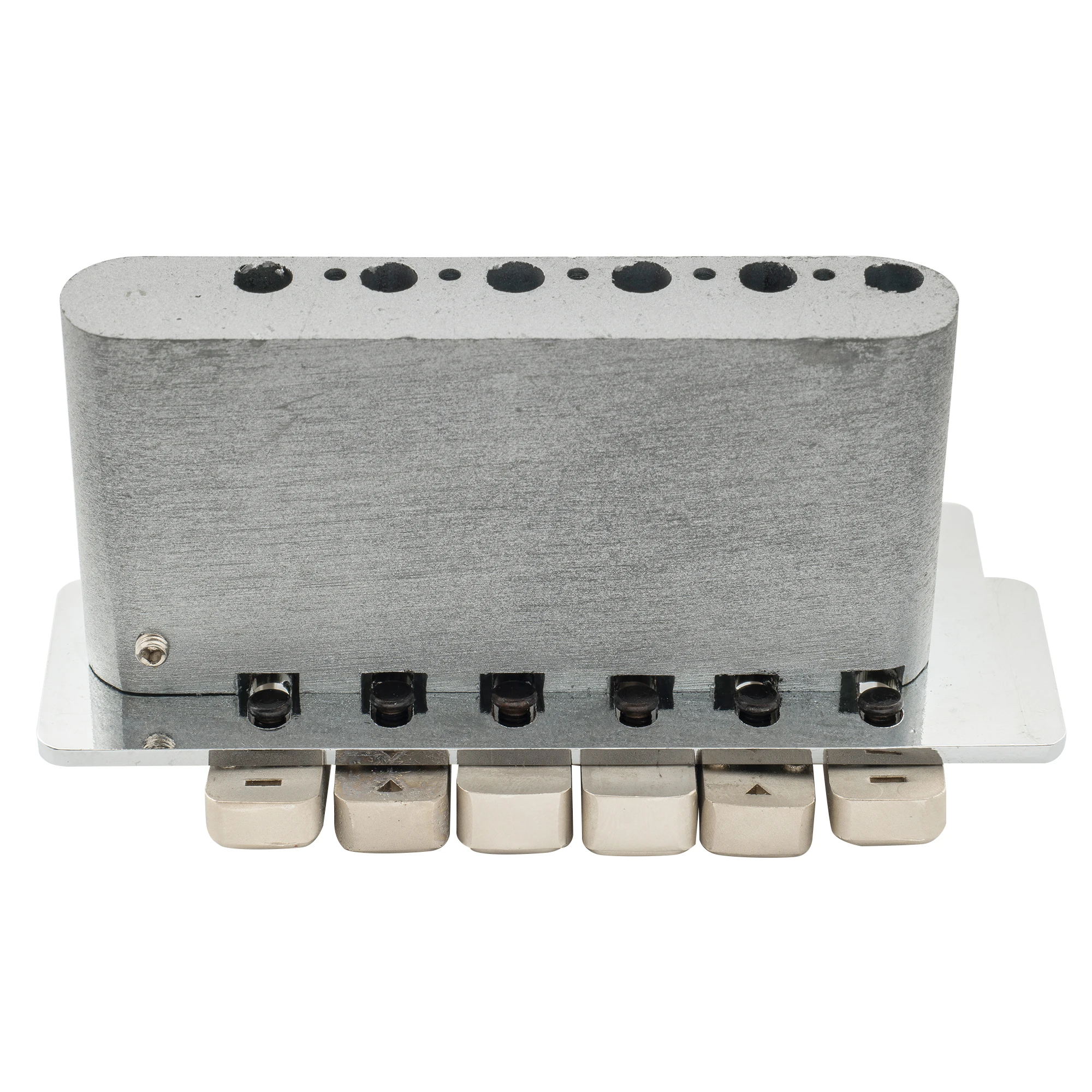 Enhance your guitar’s performance with this Wilkinson M Series 52.5mm (2-1/16 inch) individual saddle tremolo bridge, featuring a sleek, polished metal finish and precise engineering. Crafted with durable zinc alloy saddles measuring 10.5mm in width, a full zinc alloy block at 13mm thick and 36mm deep, and a steel mounting plate for stability. It offers compatibility with most modern Squier, Mexican, and American Standard or Professional Strat-style guitars (1987-present), including MIJ or MIK models, with 2 studs spaced from 54mm to 63mm. Easy to install with the steel pop-in whammy arm and mounting accessories, this high-quality upgrade ensures tuning stability, sustain, and a sophisticated look for your electric guitar.