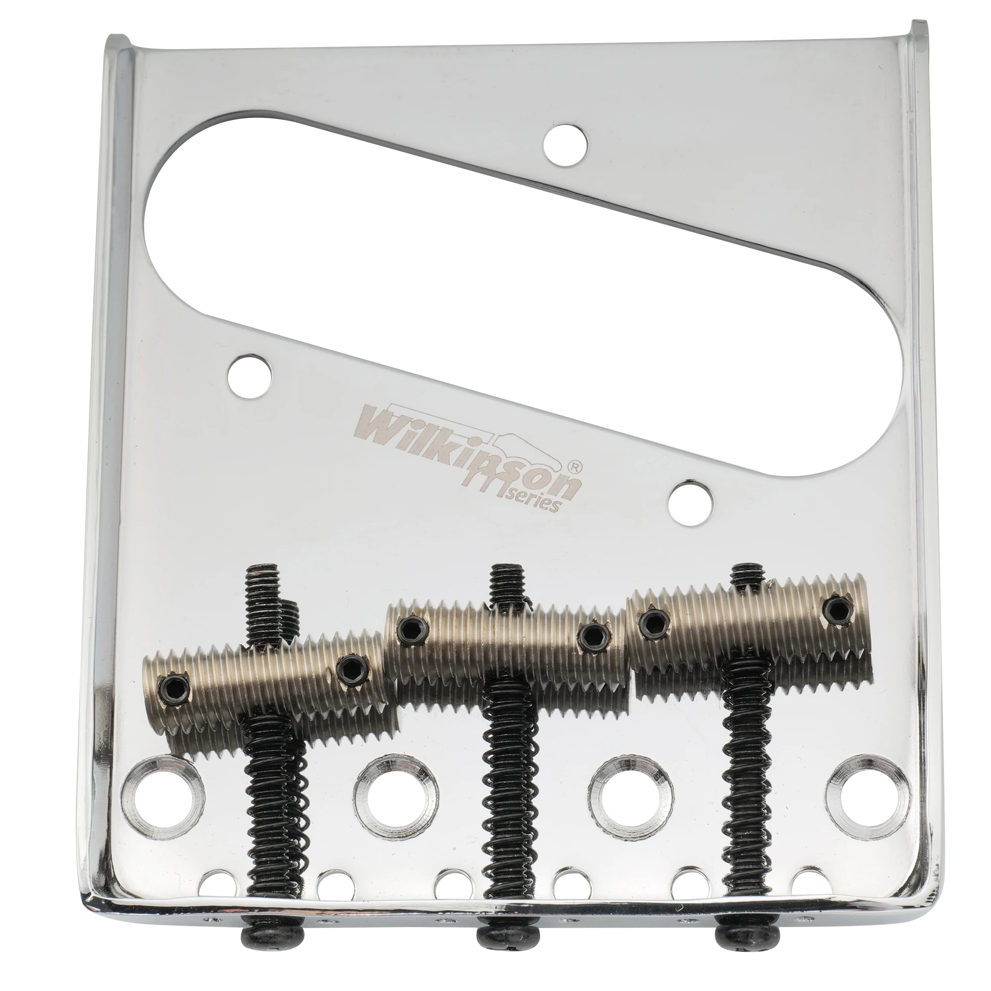 Enhance your Tele-style guitar with this high-quality Wilkinson M Series 54mm (2-1/8 inch) threaded ashtray-style bridge. Crafted from durable metal with a sleek, polished finish, available in chrome or gold, this bridge offers a vintage-inspired look combined with modern precision. Its elegant oval cutout at the top center allows easy string loading and adjustment. Designed for both aesthetic appeal and superior performance, it features four threaded saddles set at optimized angles for clearer tone and better intonation. The dual-load system lets you choose between loading strings from the top or through the body, giving you flexibility. Its precise fitting and craftsmanship ensure a stable, resonant sound, making it a perfect upgrade for your telecaster-style guitar.