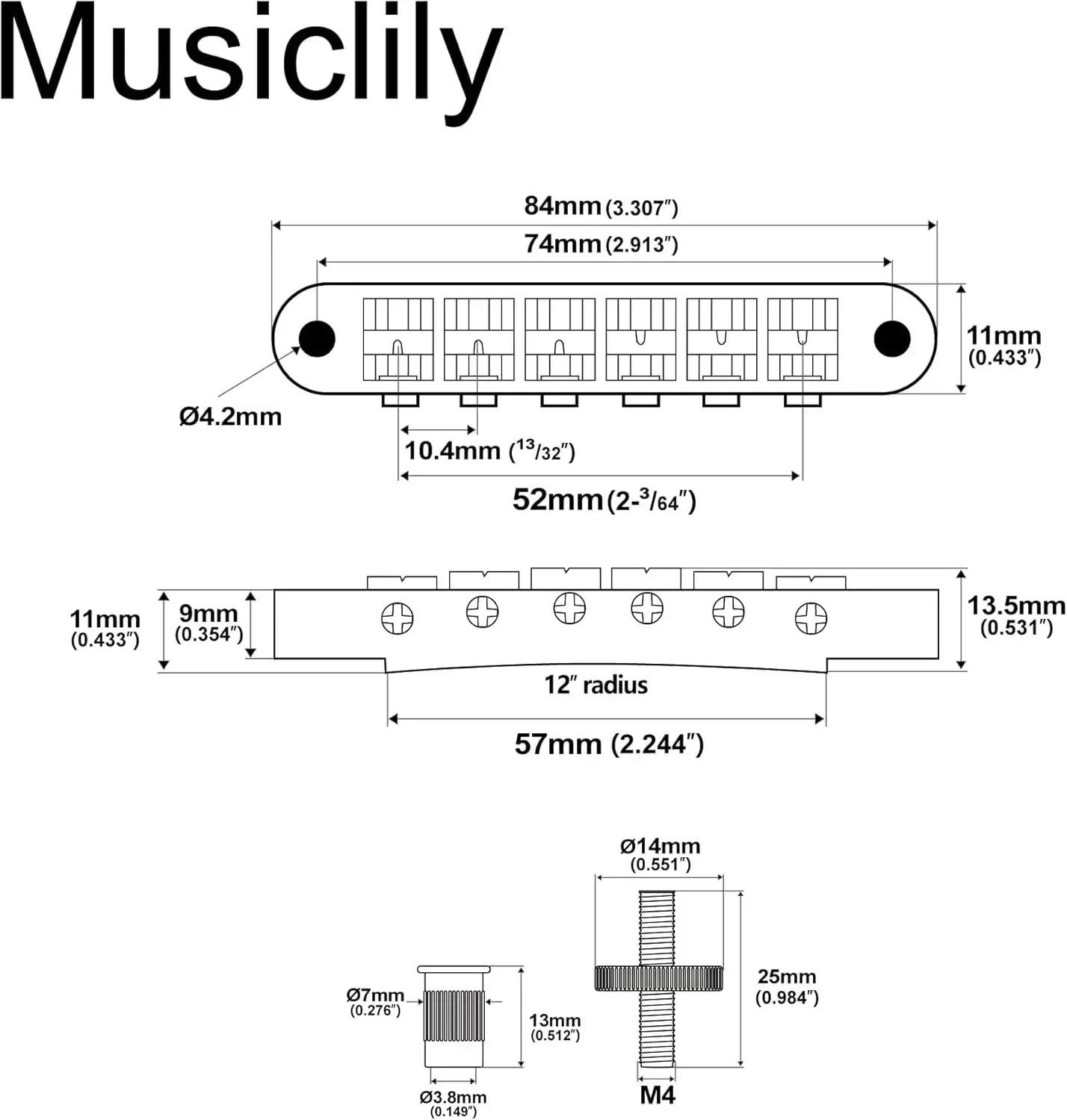 - Precisely designed with a 52mm string spacing and 12-inch saddle radius ideal for common guitar models like Les Paul and SG.
