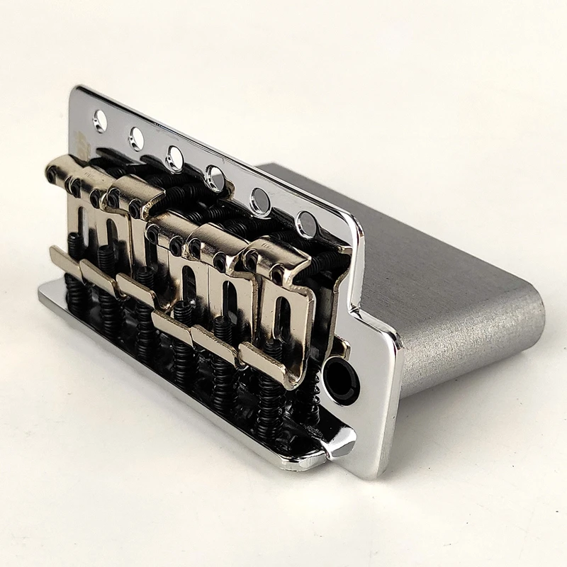 - Five individual tremolo saddles with slight upward curves designed for accurate pitch control and vibrato effects.