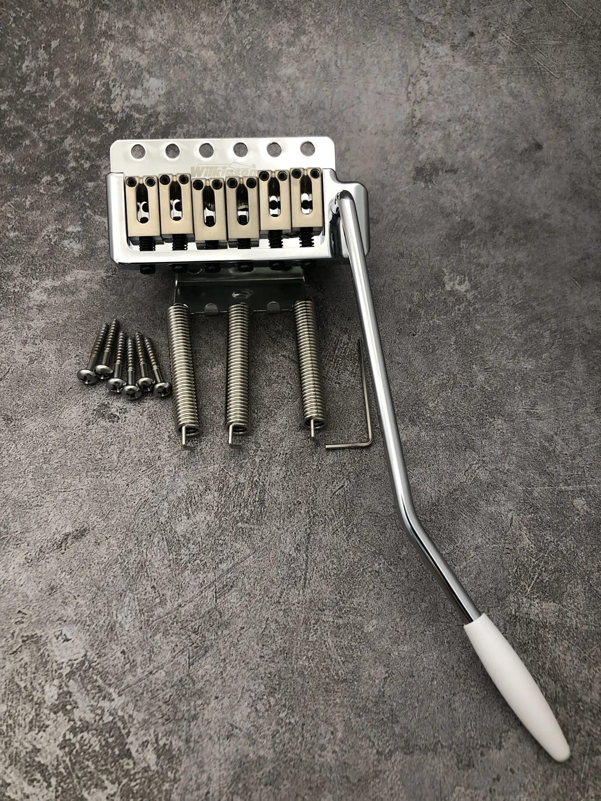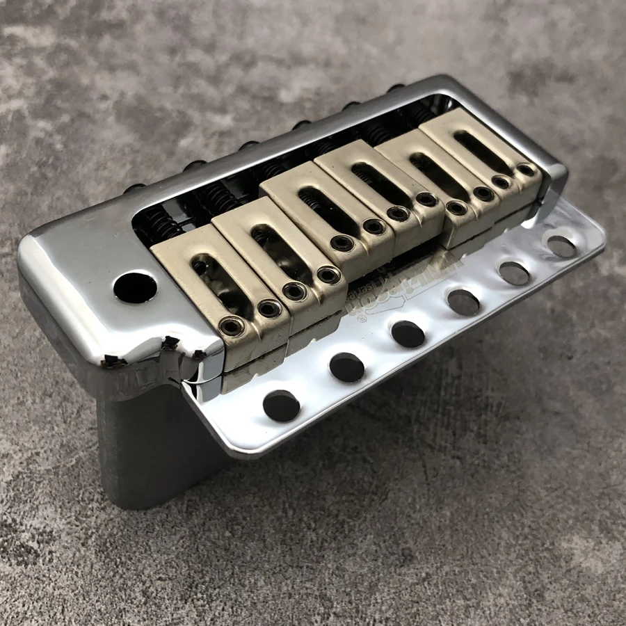 Experience premium performance with the Wilkinson WOV09 Chrome Electric Guitar Tremolo System Bridge, featuring a sleek, polished chrome finish, 52.5mm string spacing, and a 56mm screw mounting distance for versatile compatibility. Its sturdy 13mm thick full short block with 36mm depth effortlessly fits both thin and thick-bodied Stratocaster and Suhr-style guitars, ensuring precise tuning and smooth pitch bending. The set includes the durable metal bridge, polished saddles with adjustable screws, and easy-to-install push-in tremolo arm, providing a seamless upgrade to elevate your playing experience. Built for durability and style, this high-quality tremolo system enhances the aesthetics and functionality of your guitar.