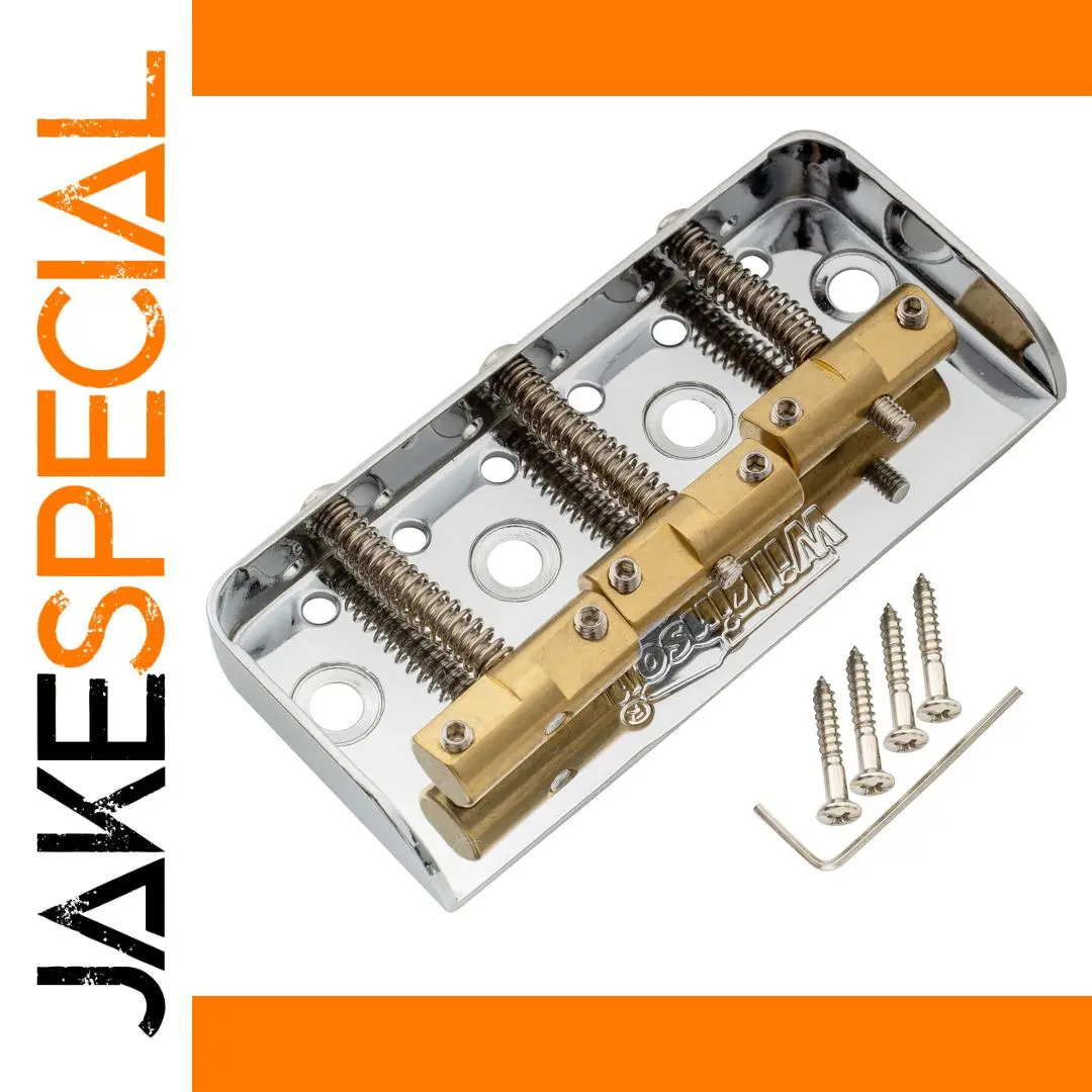 Enhance your vintage-style electric guitar with the Wilkinson WTBS 54mm (2-1/8 inch) short bridge, crafted in durable metal with a highly polished, reflective finish available in black, chrome, and gold. This classic 3-saddle compensated brass design improves string intonation and tone, inspired by vintage Fender aesthetics. It features a 54mm string spacing (10.8mm x 5mm), fits most USA, MIM, and imported Tele-style or HH-style guitars, and is compatible with string-through or top-loading setups. The package includes mounting screws and a saddle wrench, offering a reliable upgrade for a timeless, vintage look and feel.