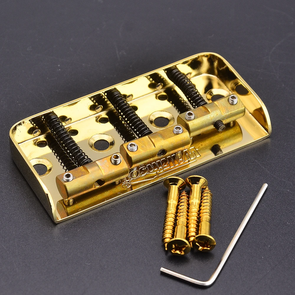 Step up your guitar game with this this original Wilkinson WTBS Short Fixed Electric Guitar Bridge, featuring a vintage-inspired design that combines durability with timeless style. Crafted from high-quality metal, it includes six brass saddles that contribute to warm, rich sound and easy intonation adjustments. Available in sleek Nickel, elegant Gold, and matte Black finishes, each set complements your guitar's aesthetic while offering a sturdy, fixed bridge solution. The precise craftsmanship ensures a perfect fit on Wilkinson WTBS Short Vintage guitars, providing both stability and high performance. Weighing just 68 grams, this versatile bridge is ideal for guitar enthusiasts seeking a reliable upgrade that combines class, craftsmanship, and sound quality. Invest in your tone today and transform your instrument’s sound.