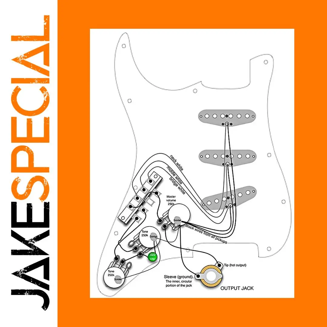 - Precise wiring setup includes connections to volume and tone controls with 250k ohm potentiometers and a 0.022μF capacitor, ensuring optimal tonal control.