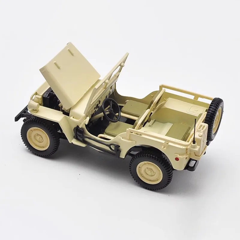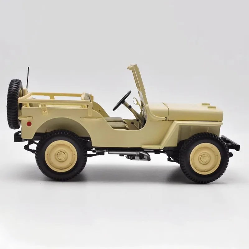 Experience the timeless charm of this meticulously crafted Willis 1924 diecast model, now available for your collection. Rendered in a classic light beige or cream hue, this miniature captures the rugged essence of early 20th-century off-road vehicles with incredible realism. Crafted from durable alloy, it boasts fine details, including textured black tires with rugged treads, a rounded hood with subtle horizontal accents, and a sturdy front bumper. The open-top design reveals a cabin fitted with matching beige or khaki-colored seat cushions and a clear plastic windshield, adding to its authenticity. Perfect for display or as a conversational piece, this model invites you to imagine the adventures of this vintage vehicle in your own space, elevating your collection with its exceptional craftsmanship and nostalgic appeal.